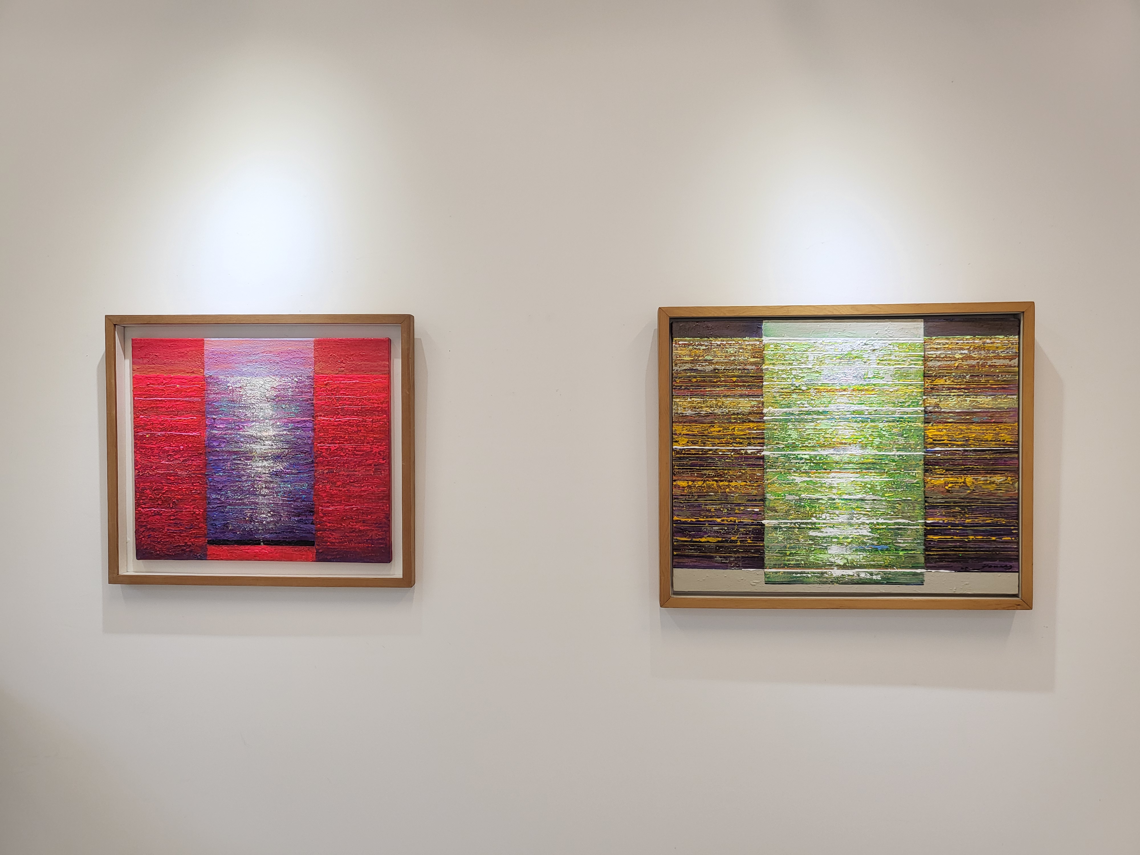 리영의 작업은 바로 이 ‘떠오름’의 순간에서 출발한다. 윤슬은 그에게 단순한 자연 현상이 아니라, 내면 깊은 곳에 잠재된 의욕과 감각을 일깨우는 생명의 단위이다. 허기진 창작의 순간마다, 빛과 물이 만들어내는 미세한 파동은 세포처럼 스며들어 작업을 다시 움직이게 하는 원동력이 된다.