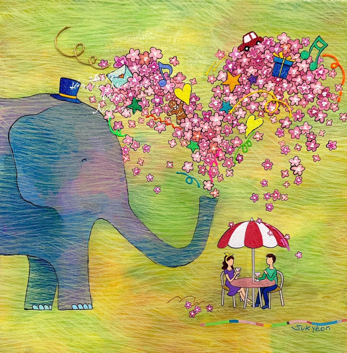 나는 상상의 시간 속 특별한 순간의 이미지를 좀더 명료하게 표현하기 위해 바람이라는 소재에 주목하게 되었다.무심결에 인식하지 못하고 지나치는 바람은 그 순간의 온도, 향기, 음악을 실어날라 특별한 아이덴티티를 만들어내기 때문이다. 바람에 실려온 따스한 온기, 향긋한 꽃 향기를 통해 봄의 정취를 느끼고, 시원하고 청량한 바다 바람을 통해 여름의 정취를 느끼듯이 바람은 그 장소와 시간이 가지는 뉘앙스를 오롯이 전달해준다. 나는 특별한 순간 속에서 느껴지는 생생한 감정들을 그림의 배경에 켜켜이 결을 내어 흘러가는 바람으로 표현하고자 하였다.