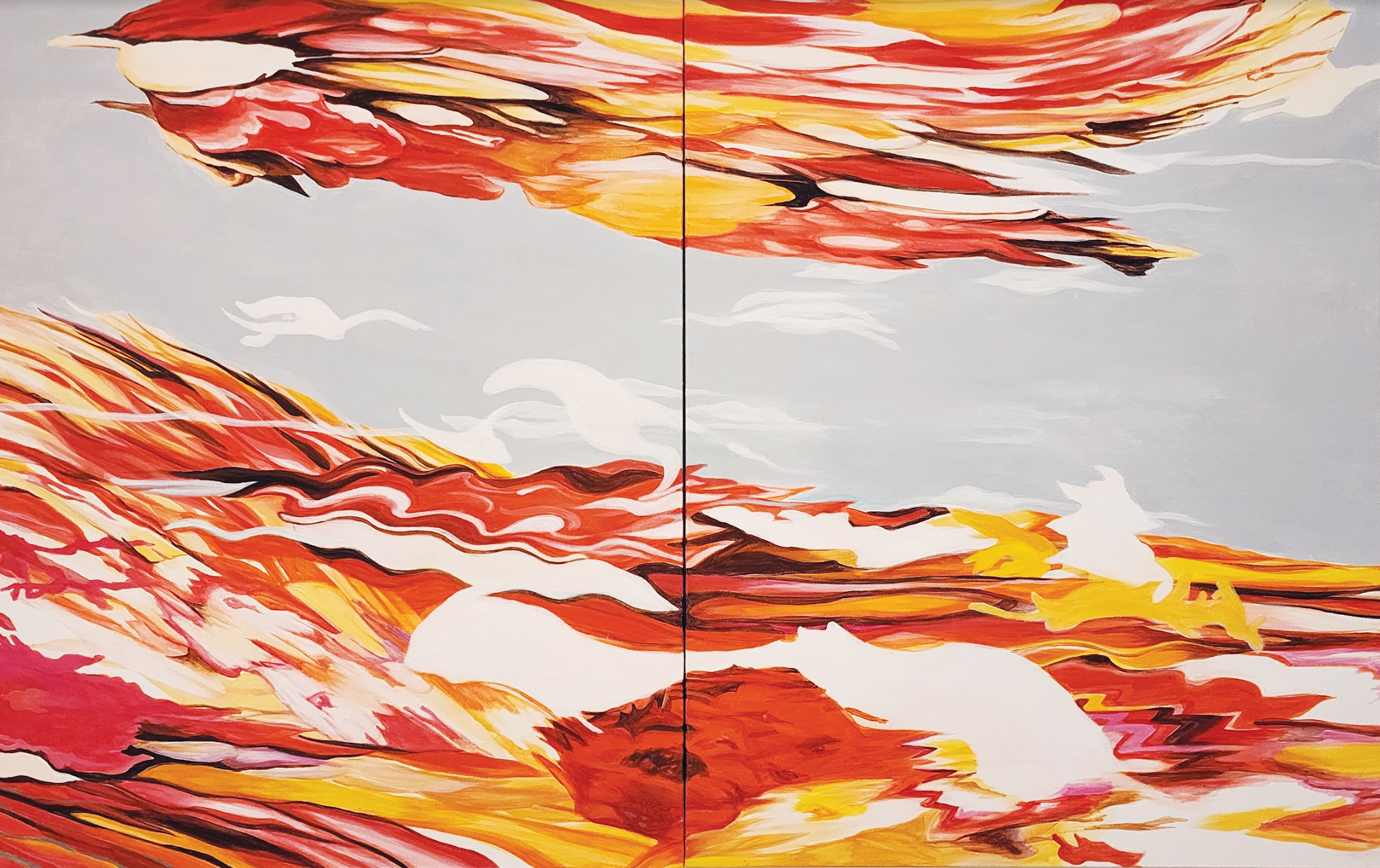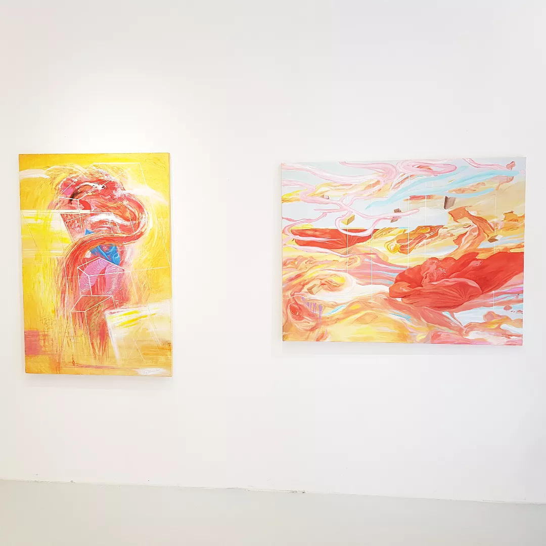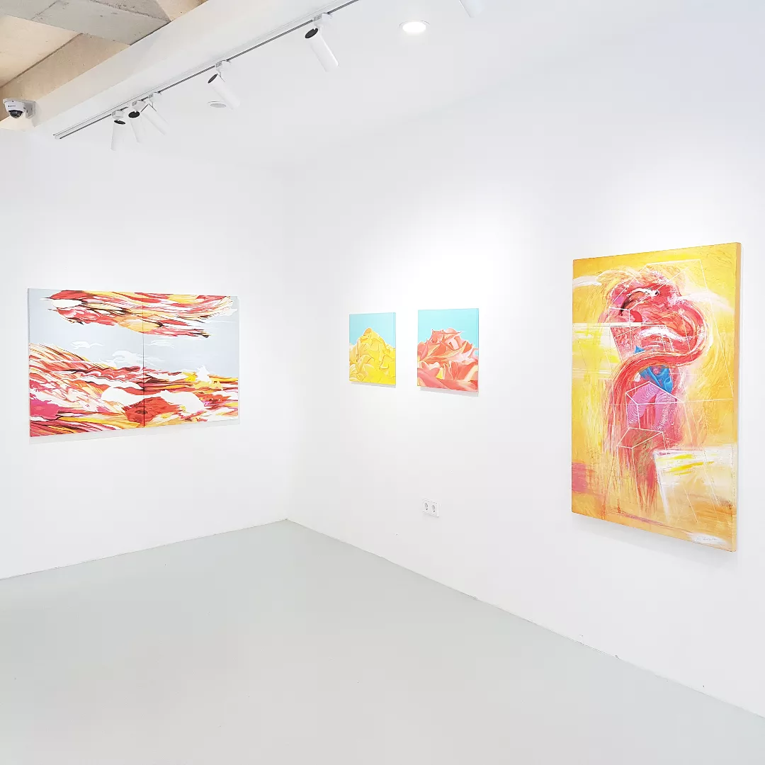 모호한 공간 속에 개개의 형상들은 무질서함 가운데 서로 어우러져 색덩어리를 이루기도하고 분리되어 해체되기도 한다. 이들은 사각의 경계선의 안과 밖을 유영하며 생성되기도 하고 소멸되기도 한다. 이 과정들 속에서 유사하거나 혹은 전혀 다른 변화를 도출하기도 한다. 그러나 동질적이거나 이질적이거나 충동이며, 익숙하지 않는 유동(流動)의 형상들은 고정된 배경 위에서 유영하는 우리의 삶의 의미를 지닌다. (작가노트 중)
