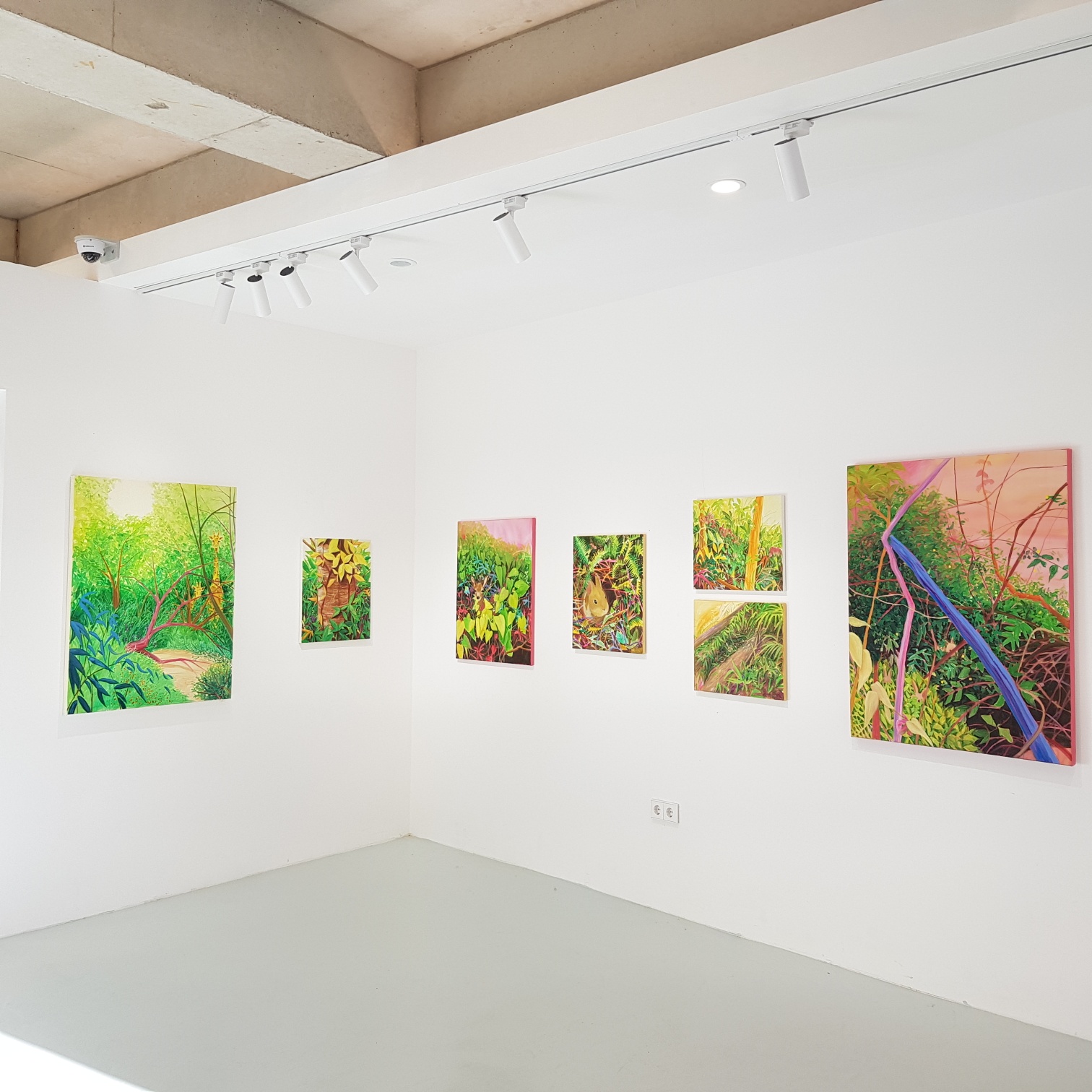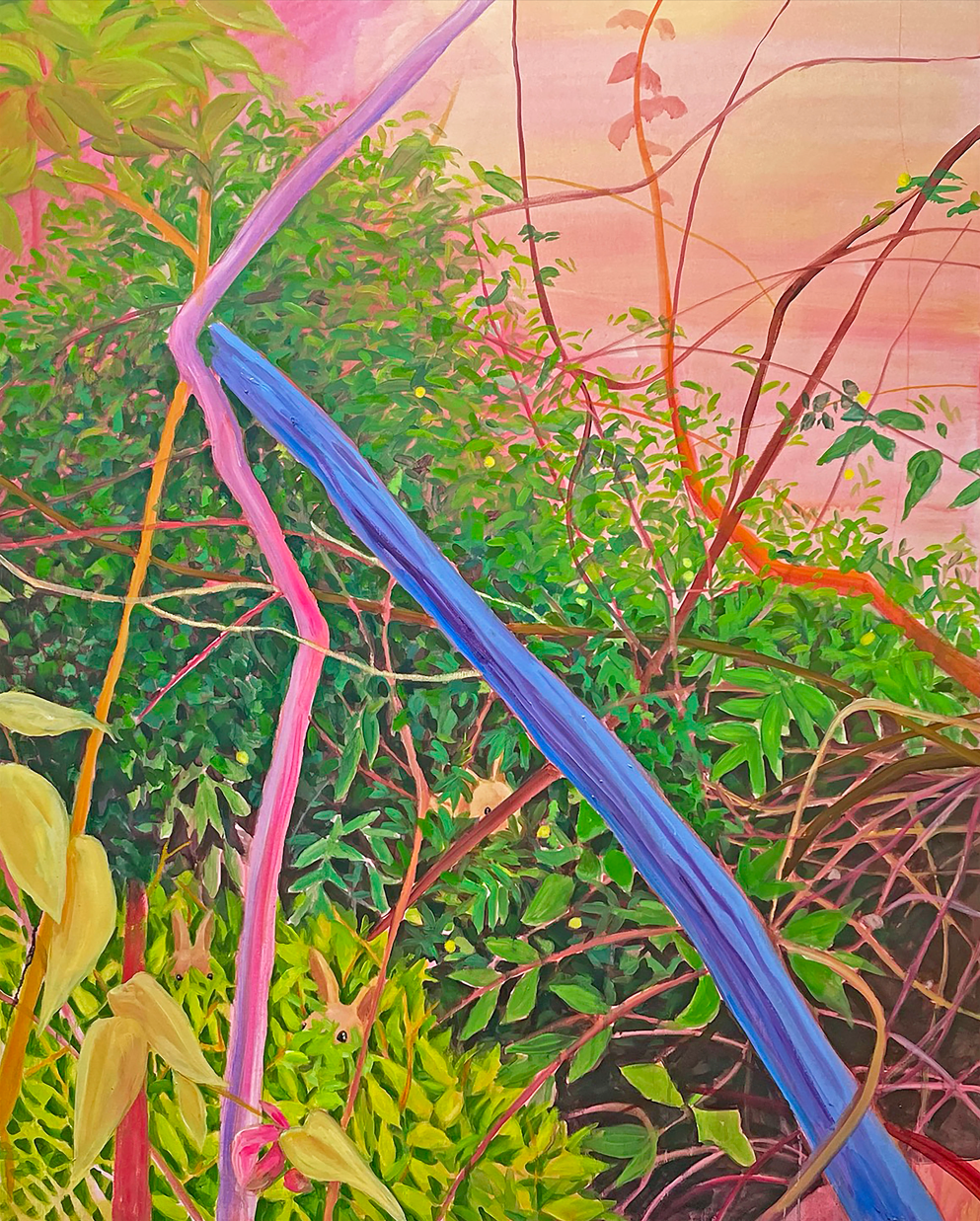 나는 타인에게 맞춰가며 살아가는 삶 속에서 종종 낯설고 외로운 나를 마주하곤 한다. 홀로 있어서 쓸쓸한 것이 아니라 ‘나’라는 공간이 텅 비어 있다는 공허함이다. 인위적인 환경 속 본능을 억누르다 잊어버린 전시동물들의 눈을 바라볼 때 느껴지는 그 느낌이다. 그래서 나는 나의 나 됨을 꿈꾸며 내가 동일시하는 전시동물들을 그들 본연의 모습으로 존중받을 수 있는 공간인 자연 속에 그들을 그려 넣기 시작했다. 타인에게서 벗어나 산다는 것은 불가능할 지도 모른다. 하지만 자신을 발견하고 그 모습 그대로 존중할 수 있다면, 자신이 주체가 되는 건강한 삶을 살아갈 수 있다고 믿는다. 나는 나를 포함한, 모든 존재들이 자신을 지키며 마음 속 단단함을 갖고 행복하게 살아가길 바라며 동물의 숲을 그린다.