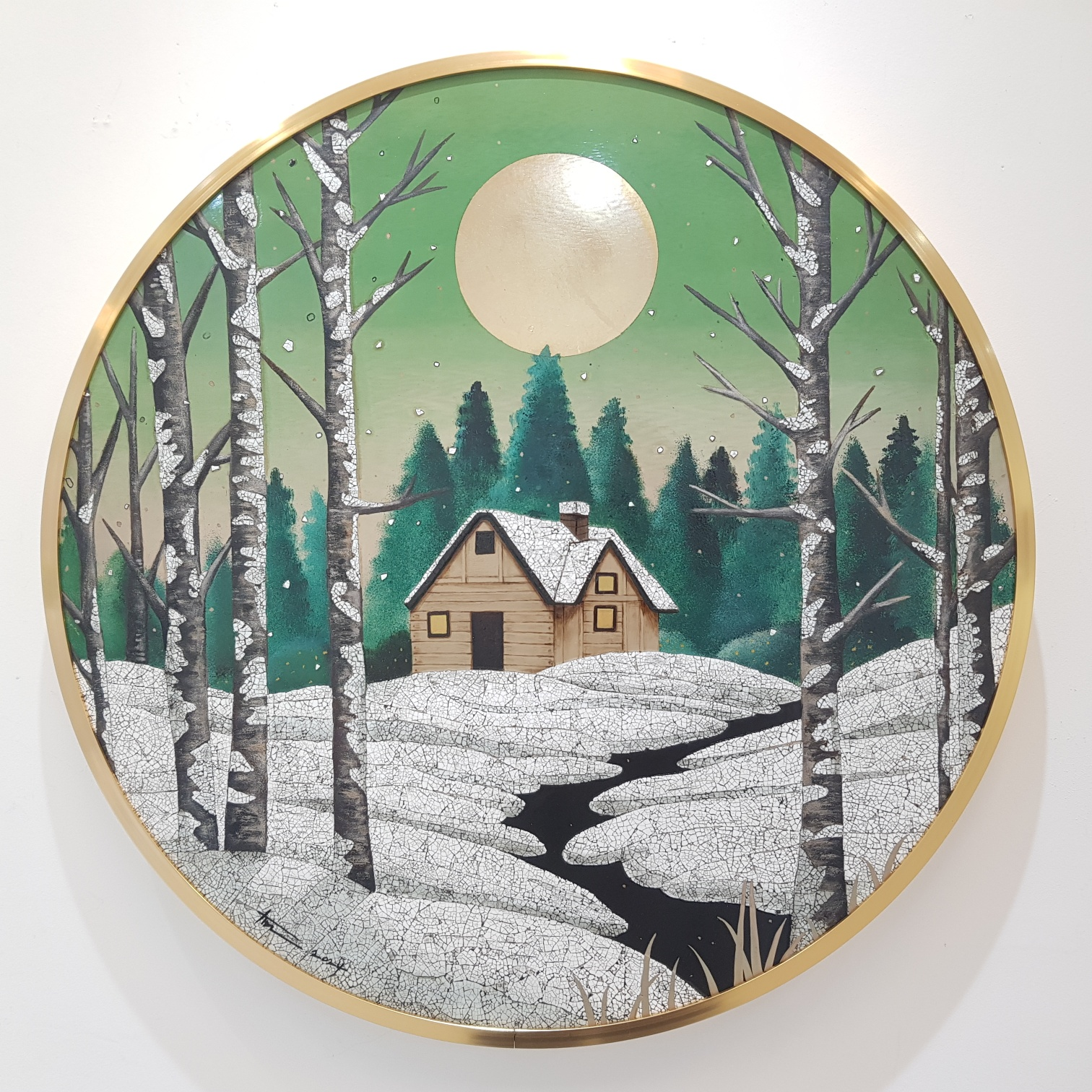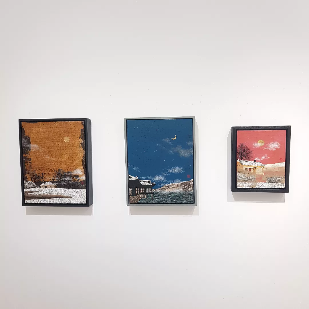 어린 날의 풍경. 나의 작업은 유년시절의 추억에서 시작되며, 작품에는 달과 식물, 집이 혼합된 자연풍경들이 등장한다. 이는 누구나 가지고 있는 마음 한 켠의 따뜻한 기억을 녹아 내어 동화 같은 장면으로 풀어 내었다. 일상속에서 우리는 대부분 누구나 할머니 댁의 따뜻한 추억을 가지고 있다. 그런 기억들이 모여 지금을 살아가게 하는 원동력이 되기도 한다. 작가 역시 할머니 손에 자랐던 유년시절을 떠올리며 눈이 쌓인 돌담의 시골집 풍경이나 지붕 넘어 보이는 큰 보름달이 모습은 어린 시절을 추억하게 만드는 평범한 풍경과 동시에 도시에서는 느낄 수 없는 정취와 서정적인 분위기를 담아냈다. 어둡고 적막한 공간에서 혼자 밝게 빛나고 있는 달의 존재는 우리에게 희망을 전달하는 거대한 생명력 그 자체이다.