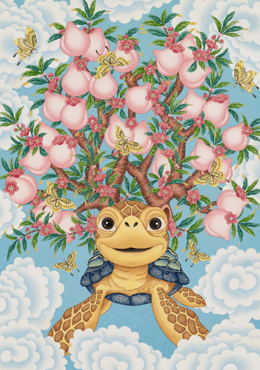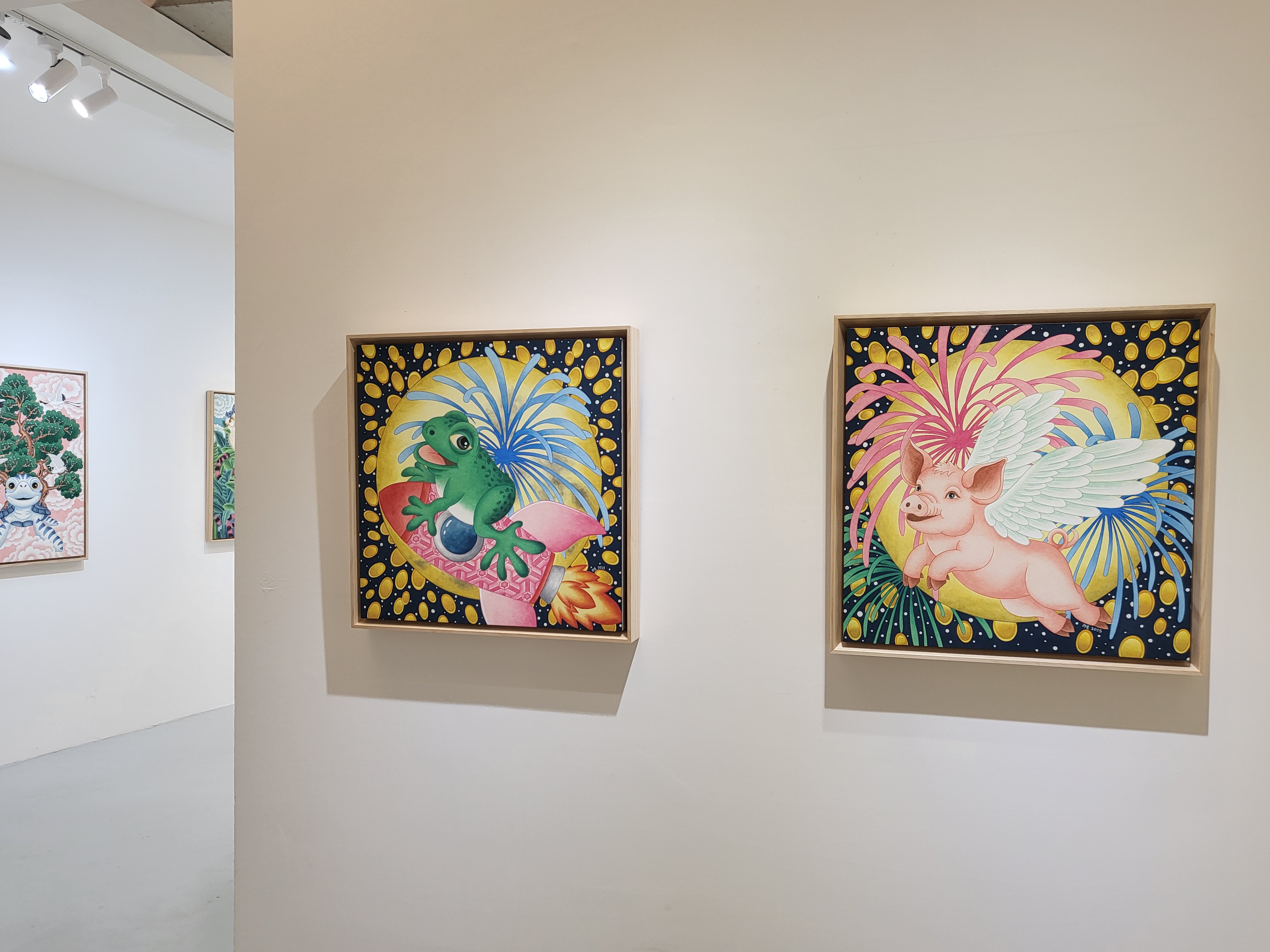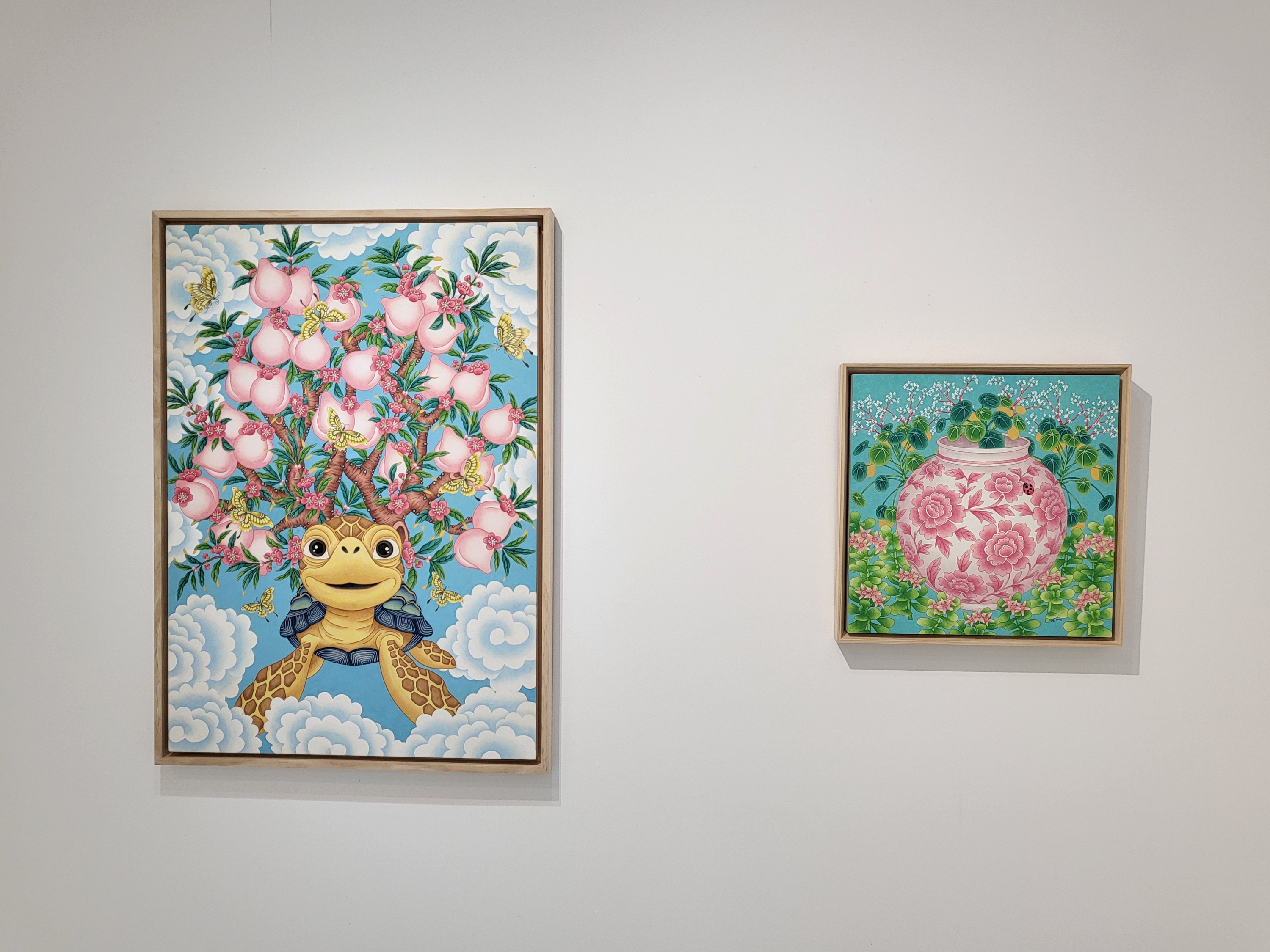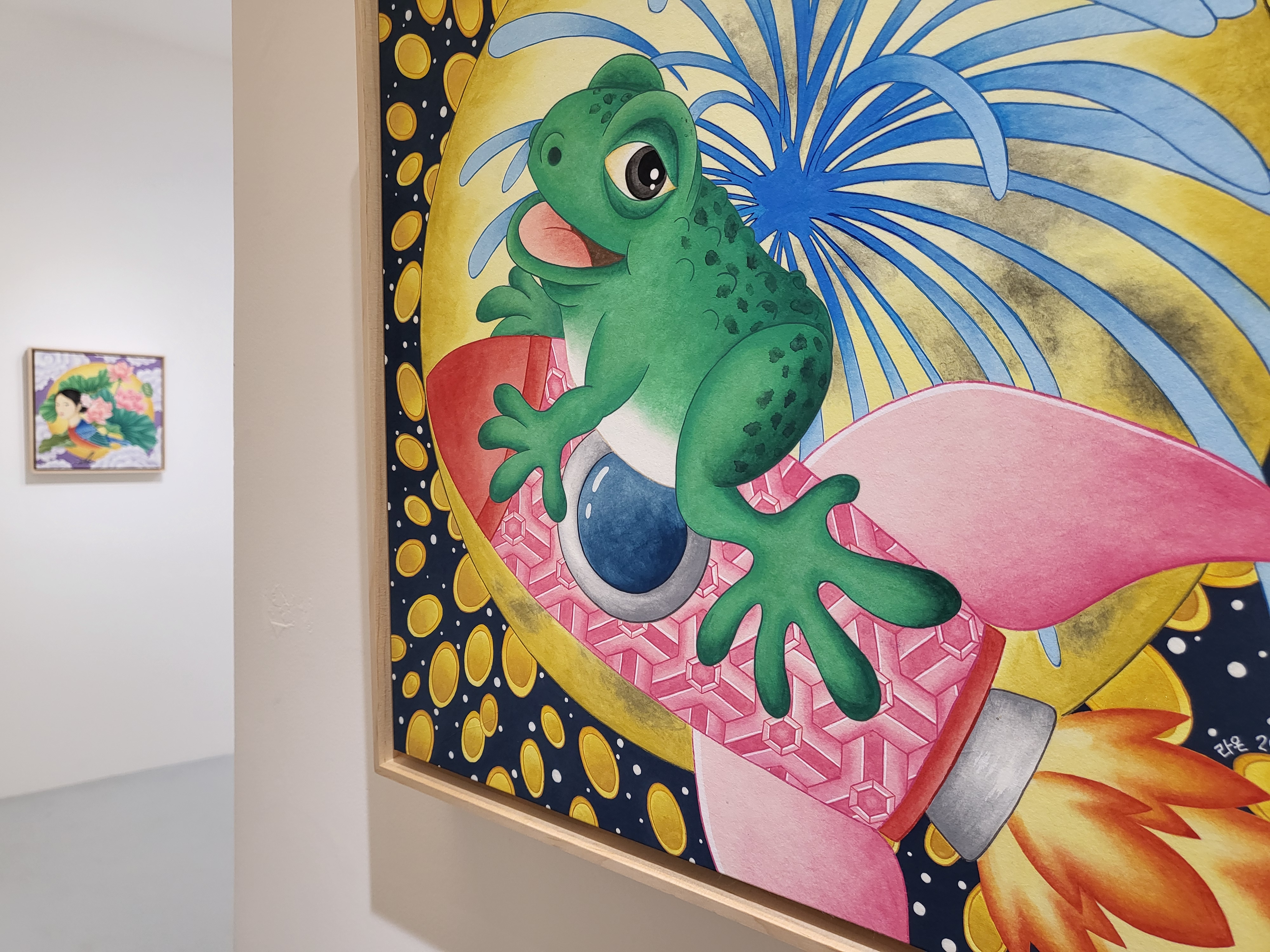 This fascination naturally led me to explore symbols and stories within Korean tradition that are still alive today, which became the foundation of my work. In the past, people created fierce-looking mythical creatures to ward off misfortune in uncertain times. In my paintings, however, they return as friendly companions who still carry sacred power while offering protection. I call them my “Guardians” or “Protective Friends,” because they were the beings who stood by me during the difficult days of the pandemic, giving me the strength to begin again.