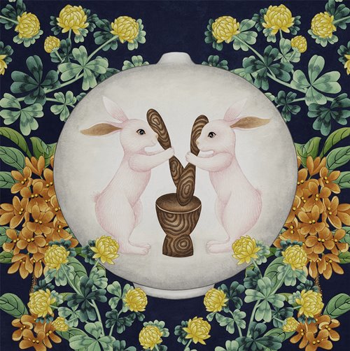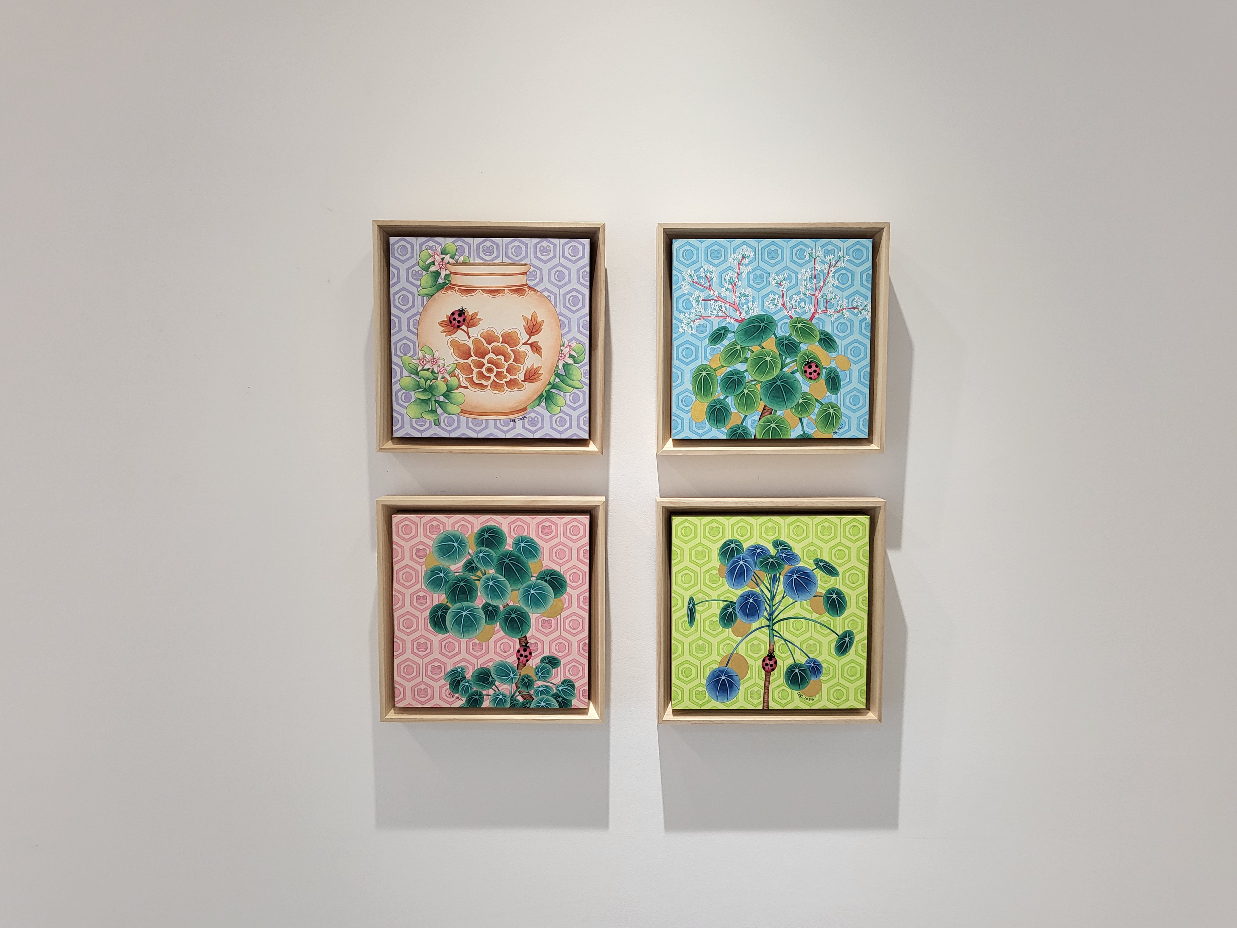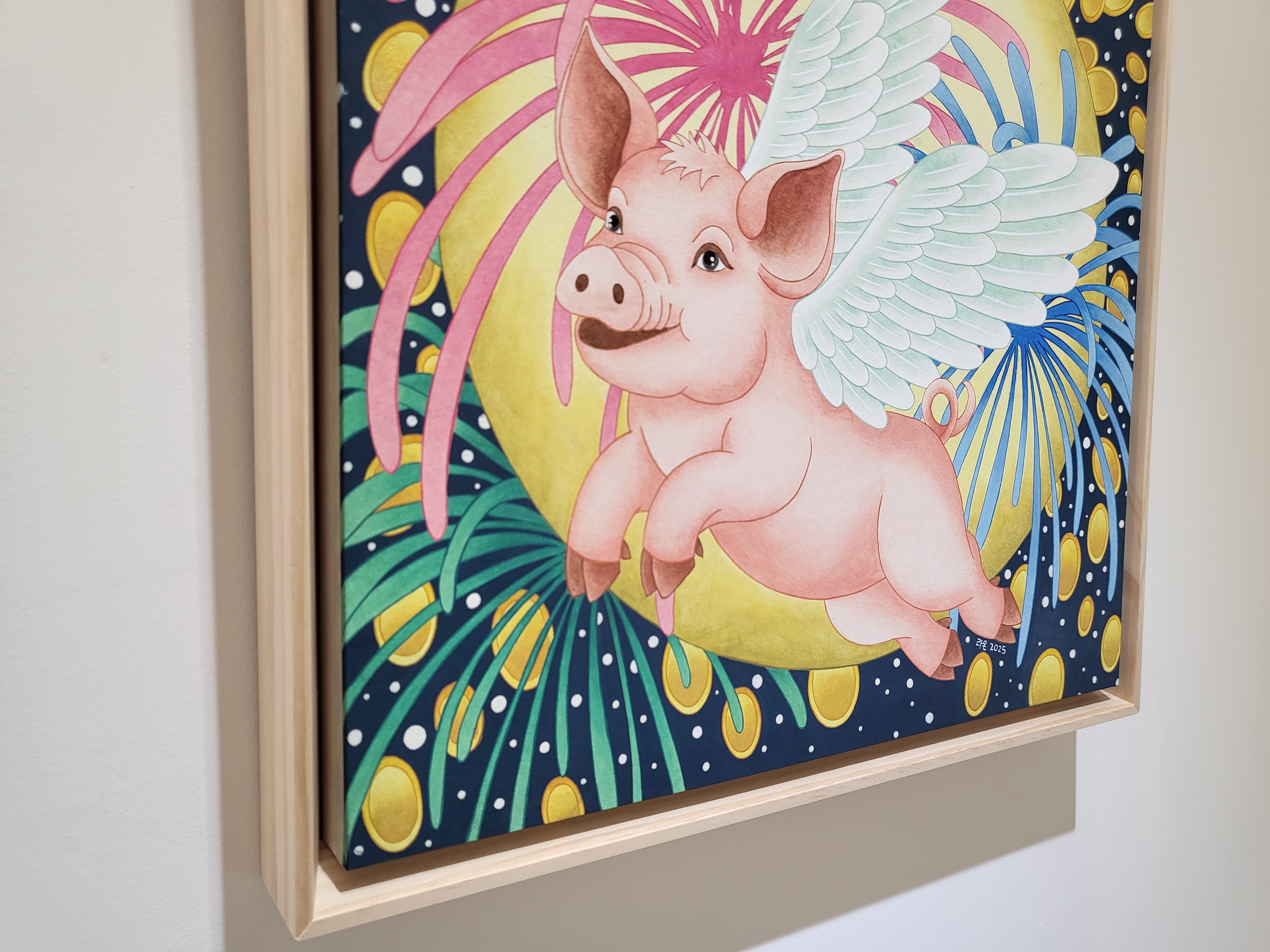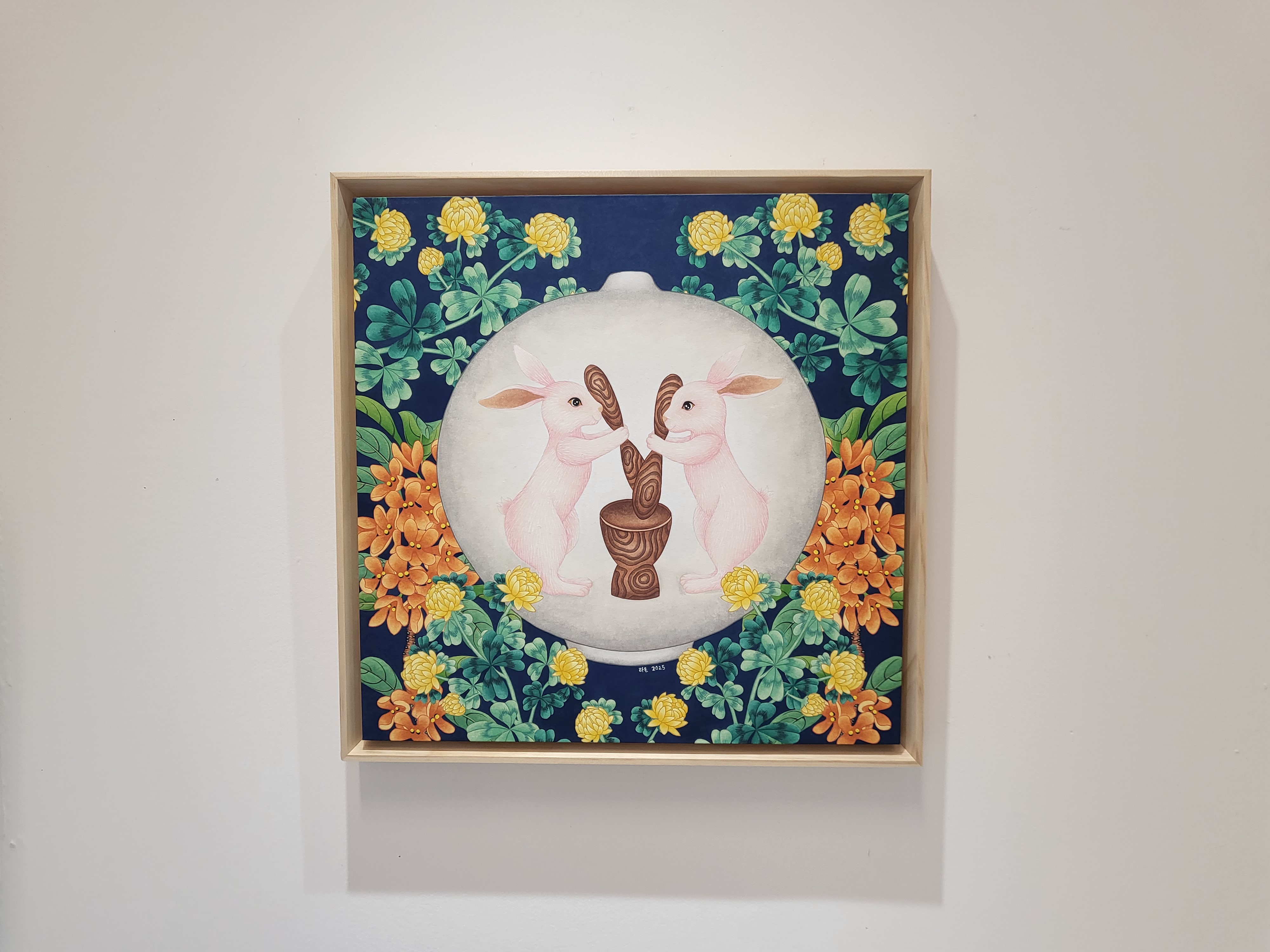This fascination naturally led me to explore symbols and stories within Korean tradition that are still alive today, which became the foundation of my work. In the past, people created fierce-looking mythical creatures to ward off misfortune in uncertain times. In my paintings, however, they return as friendly companions who still carry sacred power while offering protection. I call them my “Guardians” or “Protective Friends,” because they were the beings who stood by me during the difficult days of the pandemic, giving me the strength to begin again.