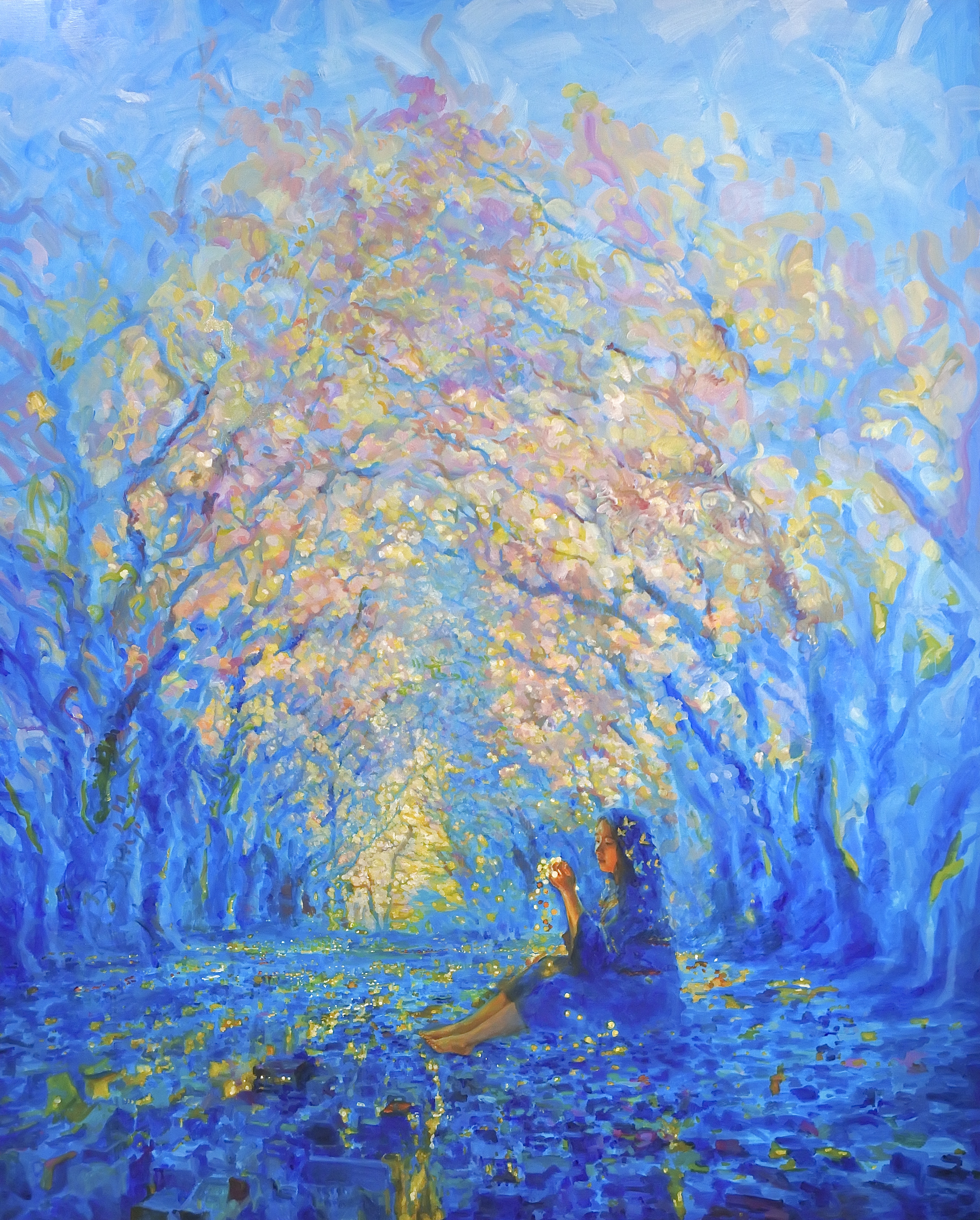 작가 노트 ㅣ 나는 음울하고 어두운 감정과 대비되는 환희의 순간들을, 푸른 색조와 대비되는 노란 빛줄기 등으로 작품에 상징화 하고 은유적으로 나타낸다. 이같은 은유 방식을 통해 음울함 속의 희망과 따스한 휴머니즘을 내포하며, 삶에 대한 찬가를 시각화하고 있다. 이는 삶에서 쓰게 되는 수많은 사회적 가면을 지칭하는 페르소나와 그 내부의 인격이 서로 괴리되고 유리된 것에서 느끼는 고통 및 좌절감에 대한 극복 의지를 표명하는 것과 관련된다. 삶 속의 수많은 고통에도 불구하고 삶은 여전히 아름다우며, 고통스러운 세상 또한 유의미하며 아름답다고 말하고 싶은 의지를 보여주고자 한다.