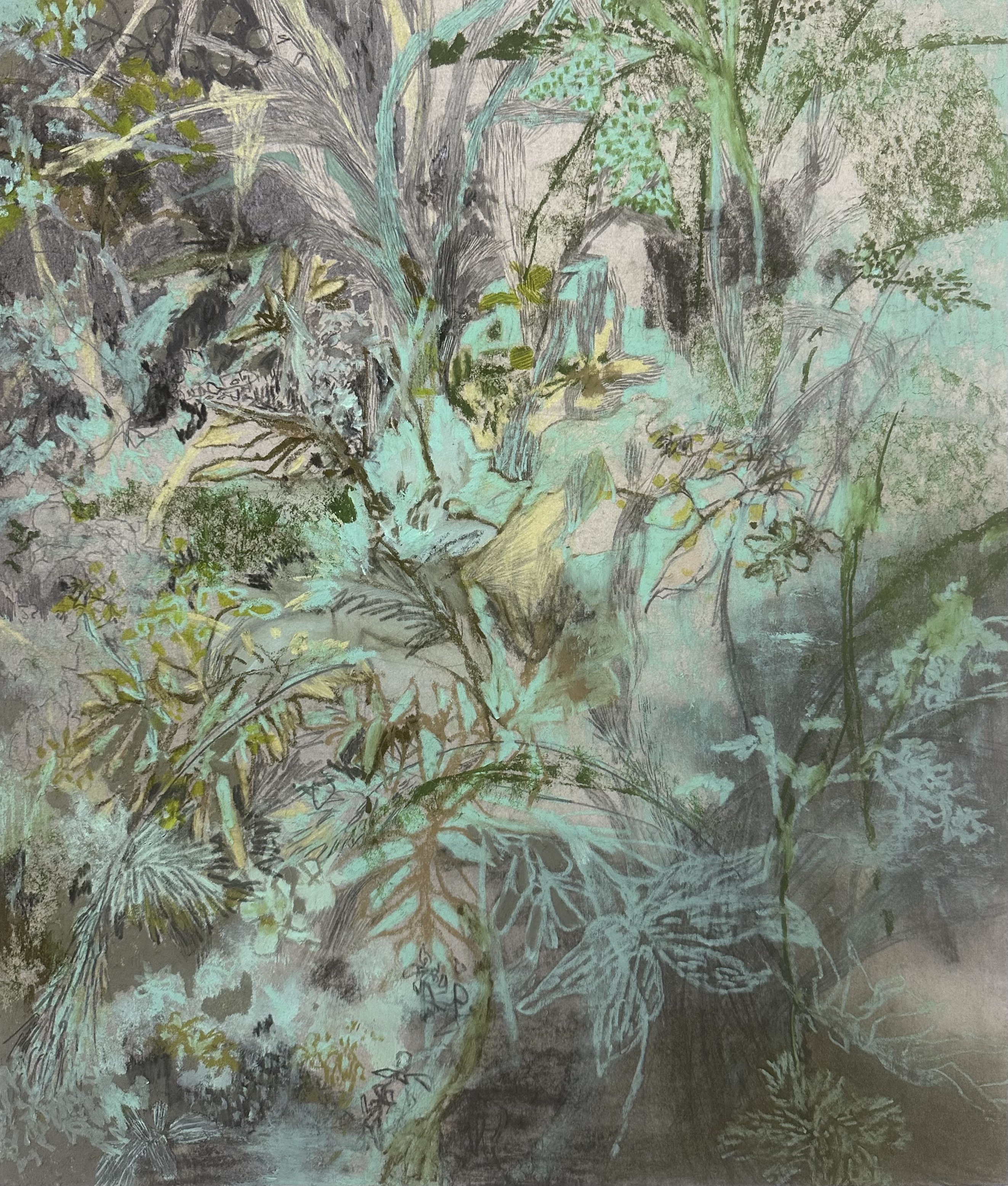 (중략) 꿈은 정확한 형상이 아닌 흐릿한 그림자 같은 형상과 흔적을 뿌리며 여운만을 남기고 간다. 그 여운을 이미지로 남기고 싶어 붓을 들며 작업을 시작한다. 온전히 집중할 때 나오는 선, 점이 조형적으로 형태를 이루며 내가 예측하지 못하는 형상이 나오기를 기다린다.