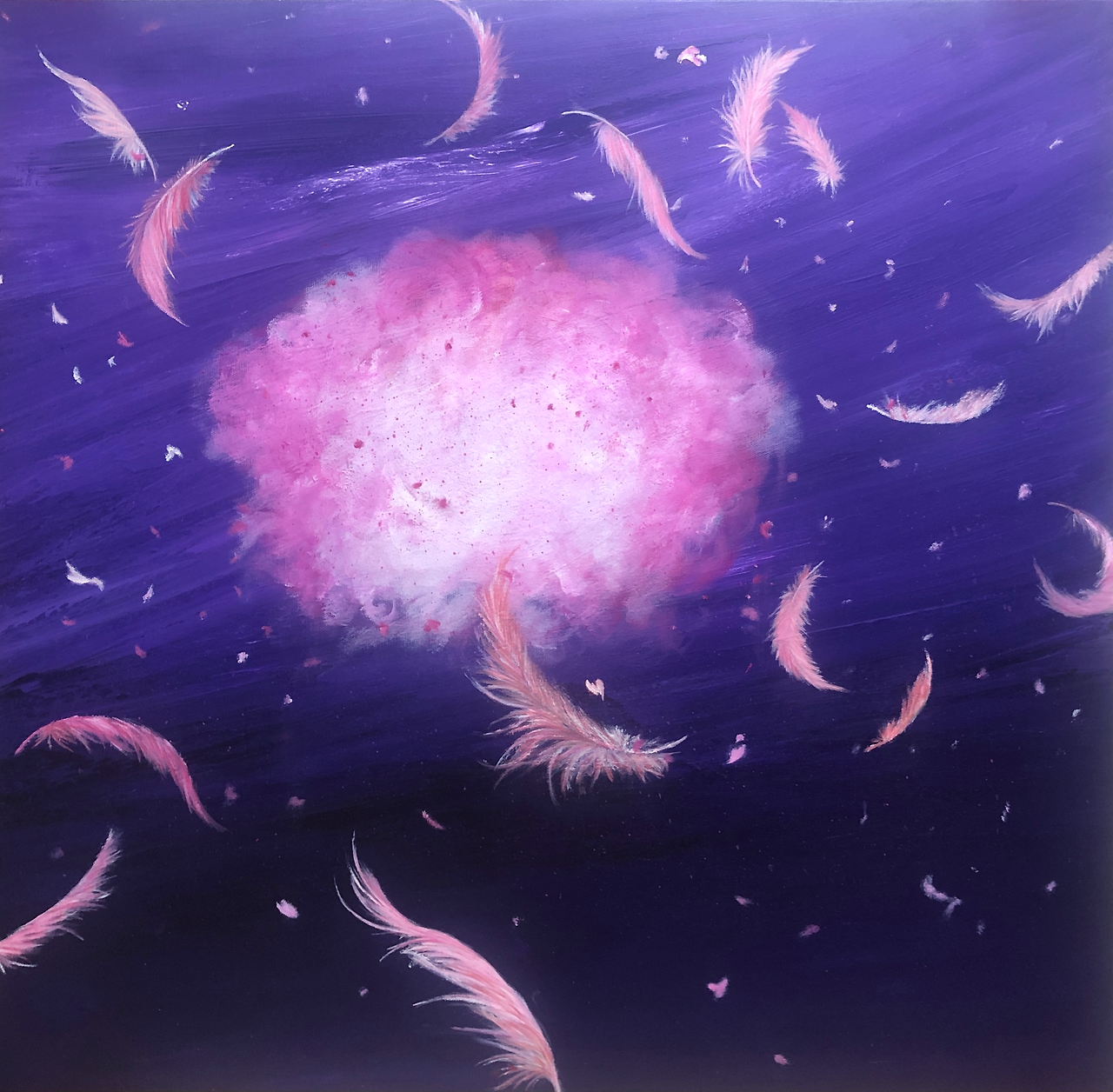 현내음 작가의 작품들은 자유롭게 움직이는 ‘바람과 향기’를 보여준다. 산들처럼 부드럽고, 평온한 바람에 흩날리는 깃털들이 각자의 아름다운 춤을 춘다. 우리는 어떠한 대상을 후각과 함께 인지할 경우 더 오랜 시간 동안 기억에 남는 것을 경험할 수 있다. 캔버스에 펼쳐진 깃털, 꽃, 풀, 그리고 바람의 자유로운 흩날림은 보는 이들의 후각을 자극시킨다.