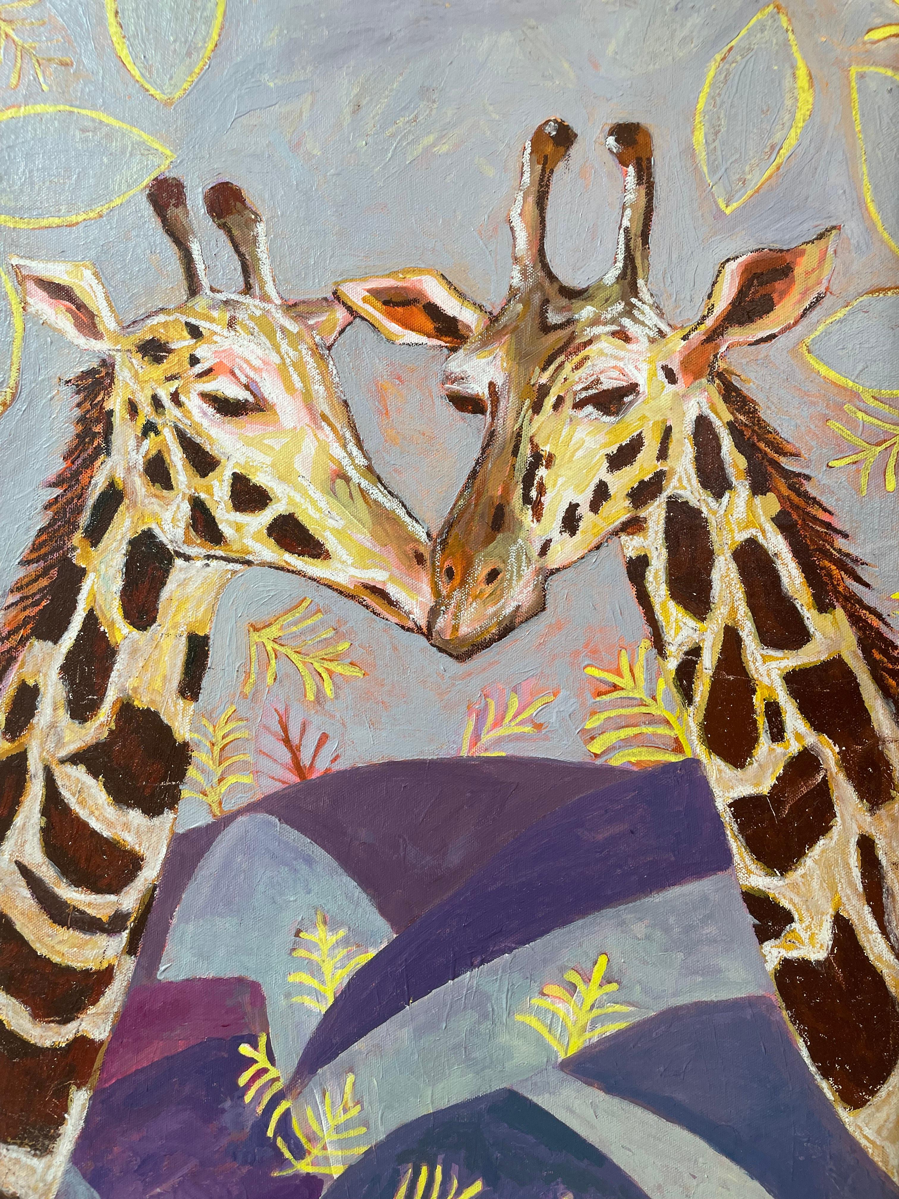 내 작업에 자주 등장하는 기린은 나의 자화상과도 같다. 예민하고 긴장된 존재이지만, 작품 속에서 눈을 감은 기린은 비로소 안정과 평화를 느낀다. 그에 반해 표범이나 치타는 내 안의 야성적이고 강인한 면모를 상징한다. 이 동물들은 감정의 양면성과 인간 내면의 복합성을 드러낸다.
