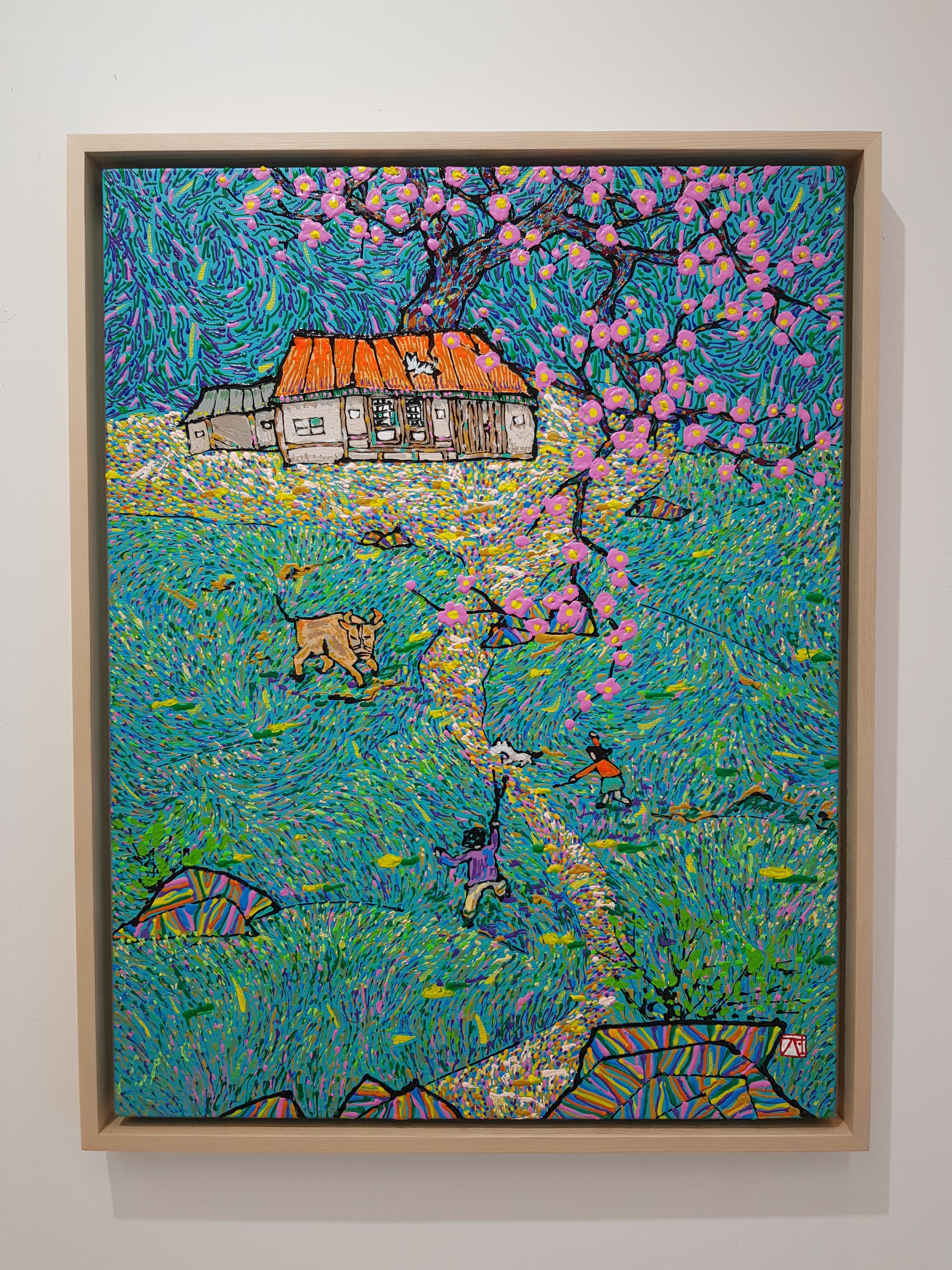 작가노트 나는 상상의 시간 속 특별한 순간의 이미지를 좀더 명료하게 표현하기 위해 바람이라는 소재에 주목하게 되었다.무심결에 인식하지 못하고 지나치는 바람은 그 순간의 온도, 향기, 음악을 실어날라 특별한 아이덴티티를 만들어내기 때문이다. 바람에 실려온 따스한 온기, 향긋한 꽃 향기를 통해 봄의 정취를 느끼고, 시원하고 청량한 바다 바람을 통해 여름의 정취를 느끼듯이 바람은 그 장소와 시간이 가지는 뉘앙스를 오롯이 전달해준다. 나는 특별한 순간 속에서 느껴지는 생생한 감정들을 그림의 배경에 켜켜이 결을 내어 흘러가는 바람으로 표현하고자 하였다.