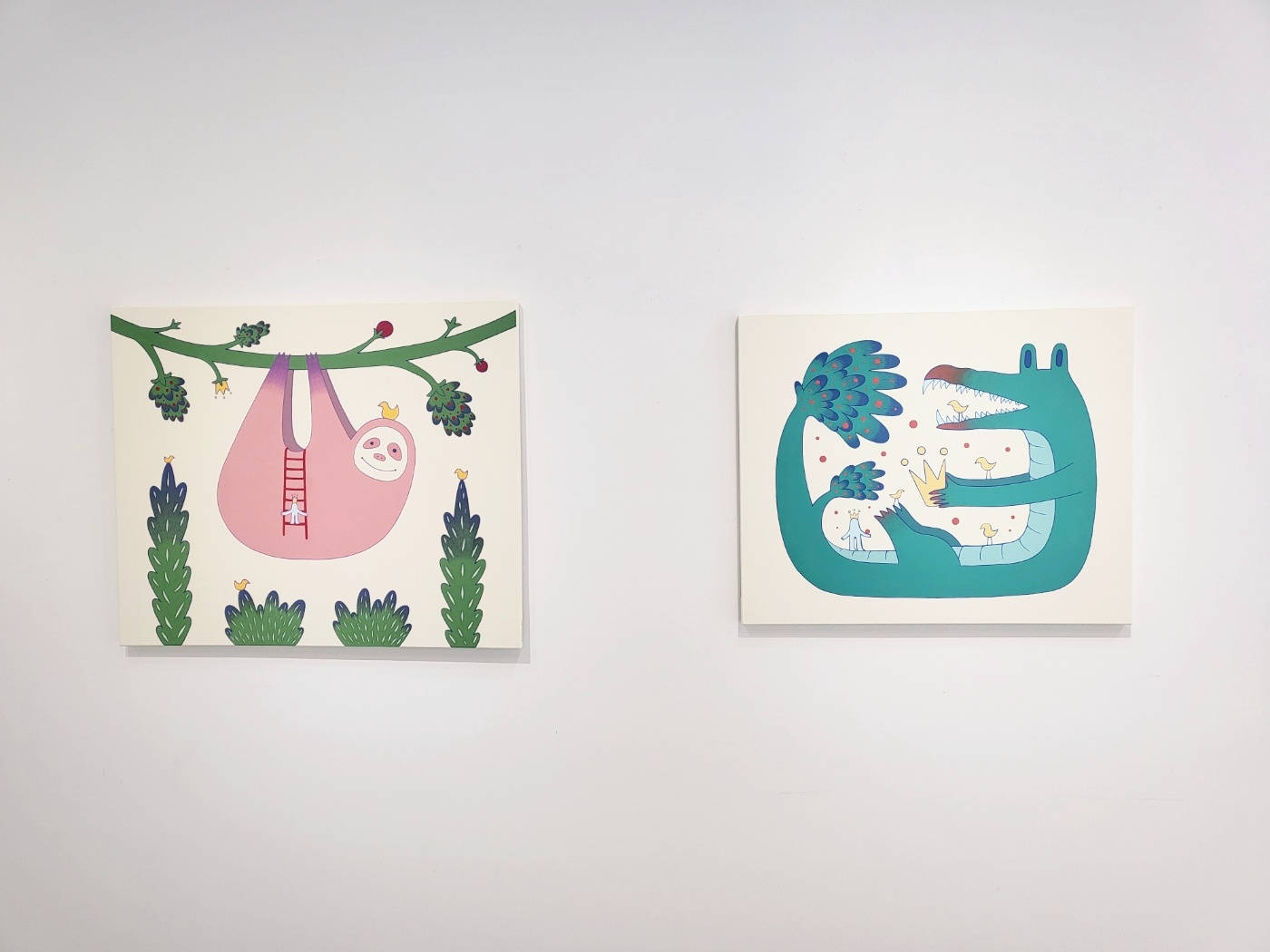 이번 전시의 그림들은 왕관, 새, 붉은 실타래 등의 상징적 요소를 통해, 내면의 아이가 무언가를 찾아 헤매다 마침내 그것으로부터 자유로워지는 과정을 이야기처럼 담아냈다. 내 작업에서 ‘왕관’은 자아를 상징하며, 내면의 아이와 자아는 내 작업의 가장 중요한 주제이기도 하다. 나아가 어린아이의 순수한 시선으로 돌아가 상처를 치유하고, 일상을 여행하듯 누릴 수 있기를 바라는 마음을 작품 속에 녹였다.