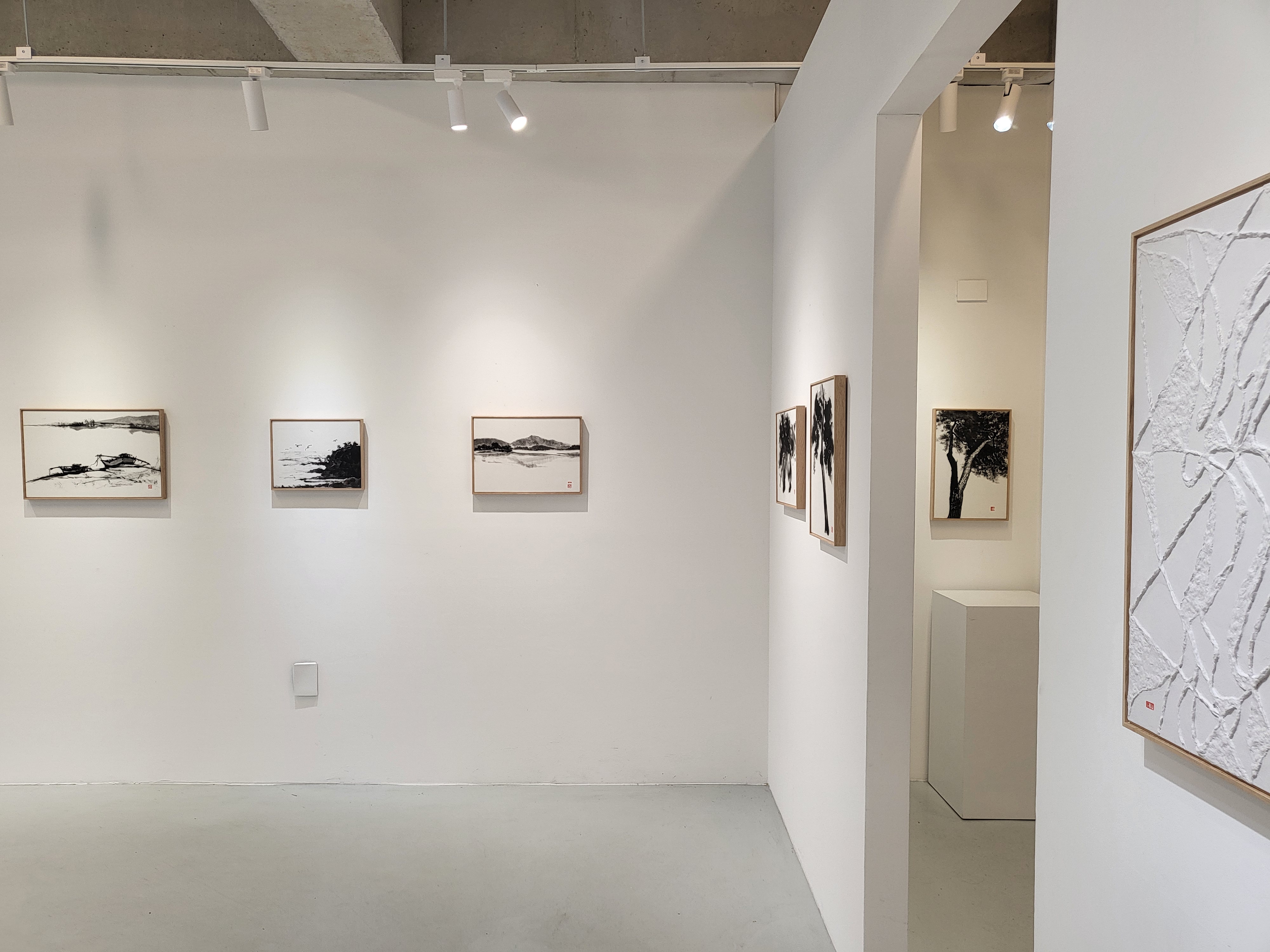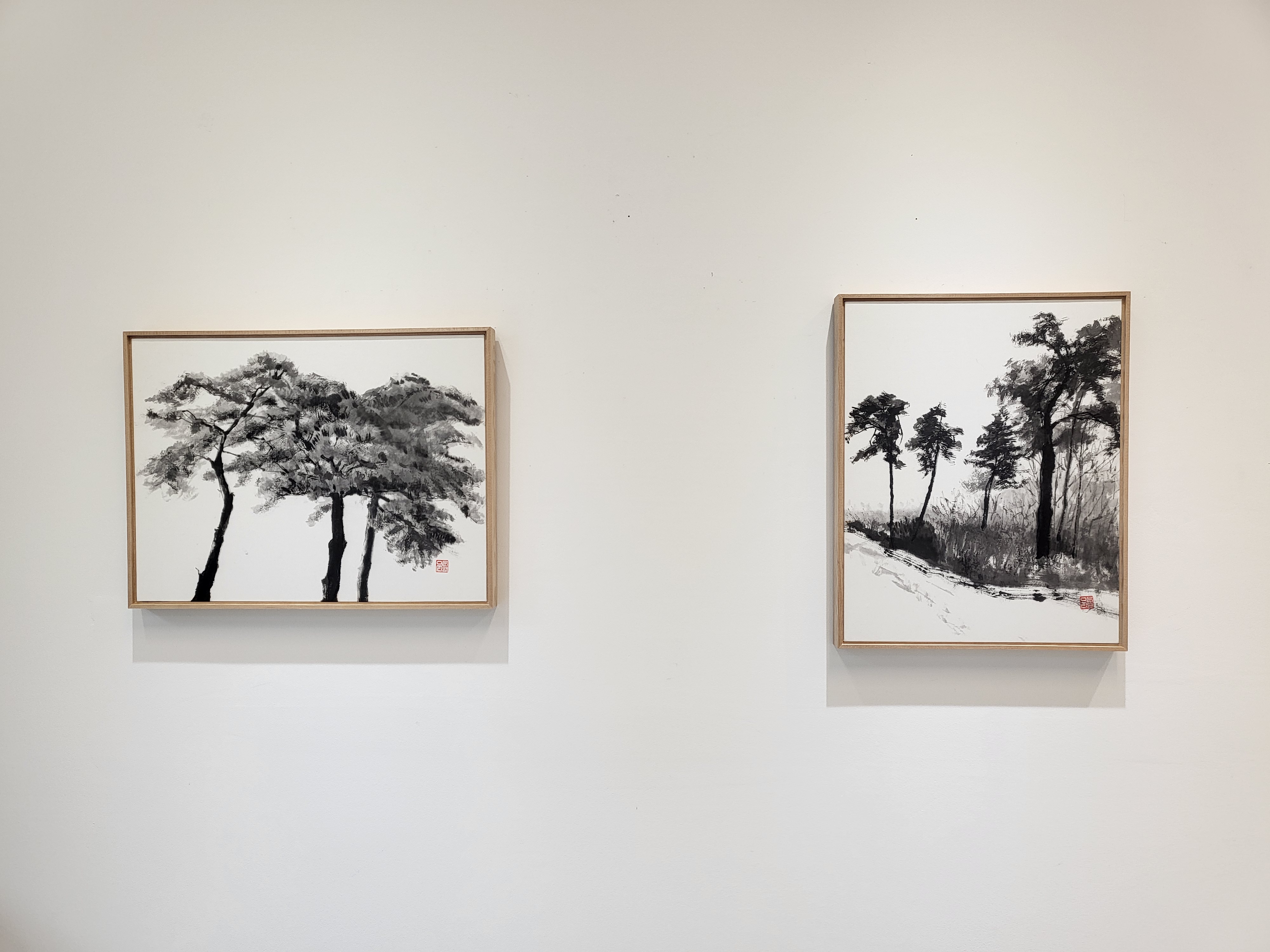 이번 전시에서는 나무의 형상을 두 가지 방식으로 표현했다. 첫 번째는 동양 미학의 ‘형사’에 기반한 시각적 재현으로, 수묵 기법을 사용해 사실적으로 묘사함으로써 ‘생명력의 탄생’이라는 개념을 전달한다.