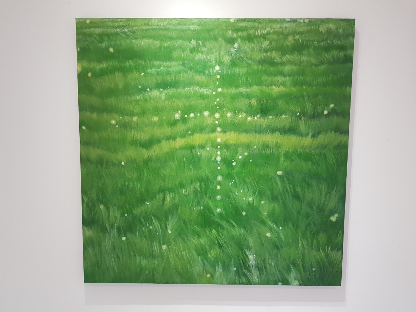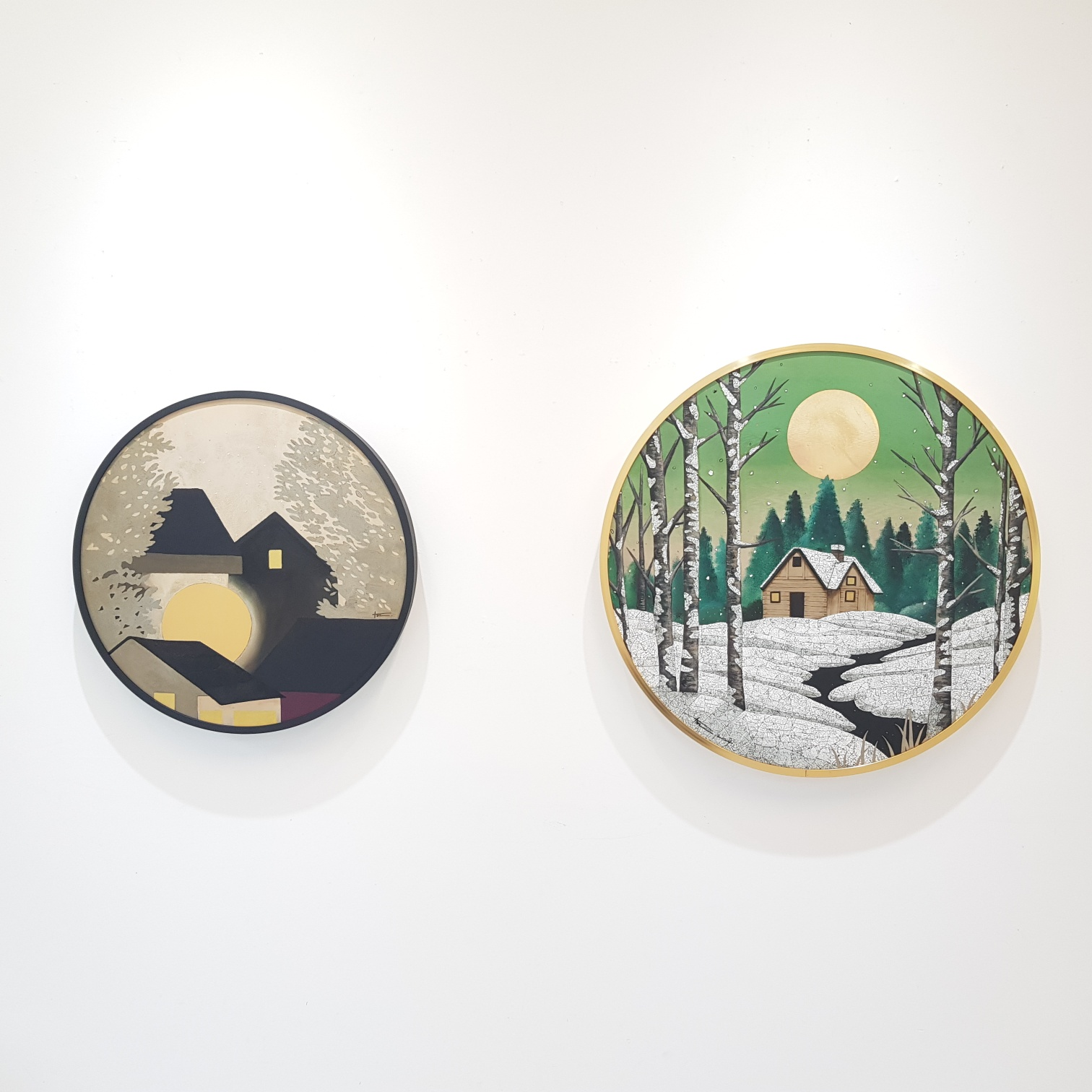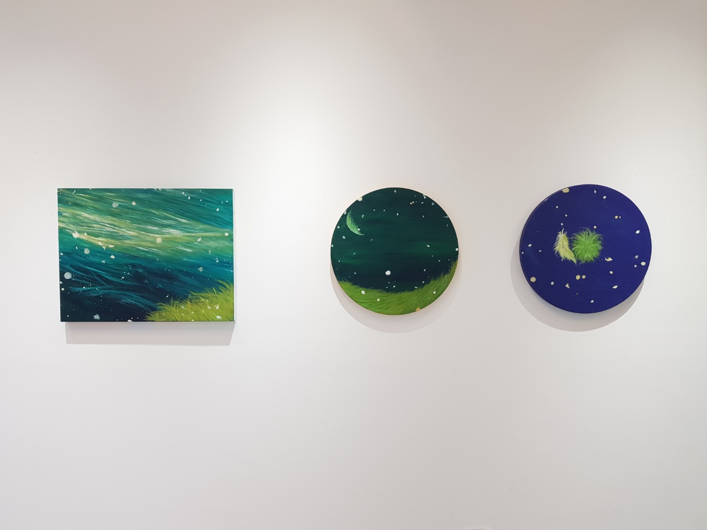 어린 날의 풍경. 나의 작업은 유년시절의 추억에서 시작되며, 작품에는 달과 식물, 집이 혼합된 자연풍경들이 등장한다. 이는 누구나 가지고 있는 마음 한 켠의 따뜻한 기억을 녹아 내어 동화 같은 장면으로 풀어 내었다. 일상속에서 우리는 대부분 누구나 할머니 댁의 따뜻한 추억을 가지고 있다. 그런 기억들이 모여 지금을 살아가게 하는 원동력이 되기도 한다. 작가 역시 할머니 손에 자랐던 유년시절을 떠올리며 눈이 쌓인 돌담의 시골집 풍경이나 지붕 넘어 보이는 큰 보름달이 모습은 어린 시절을 추억하게 만드는 평범한 풍경과 동시에 도시에서는 느낄 수 없는 정취와 서정적인 분위기를 담아냈다. 어둡고 적막한 공간에서 혼자 밝게 빛나고 있는 달의 존재는 우리에게 희망을 전달하는 거대한 생명력 그 자체이다.