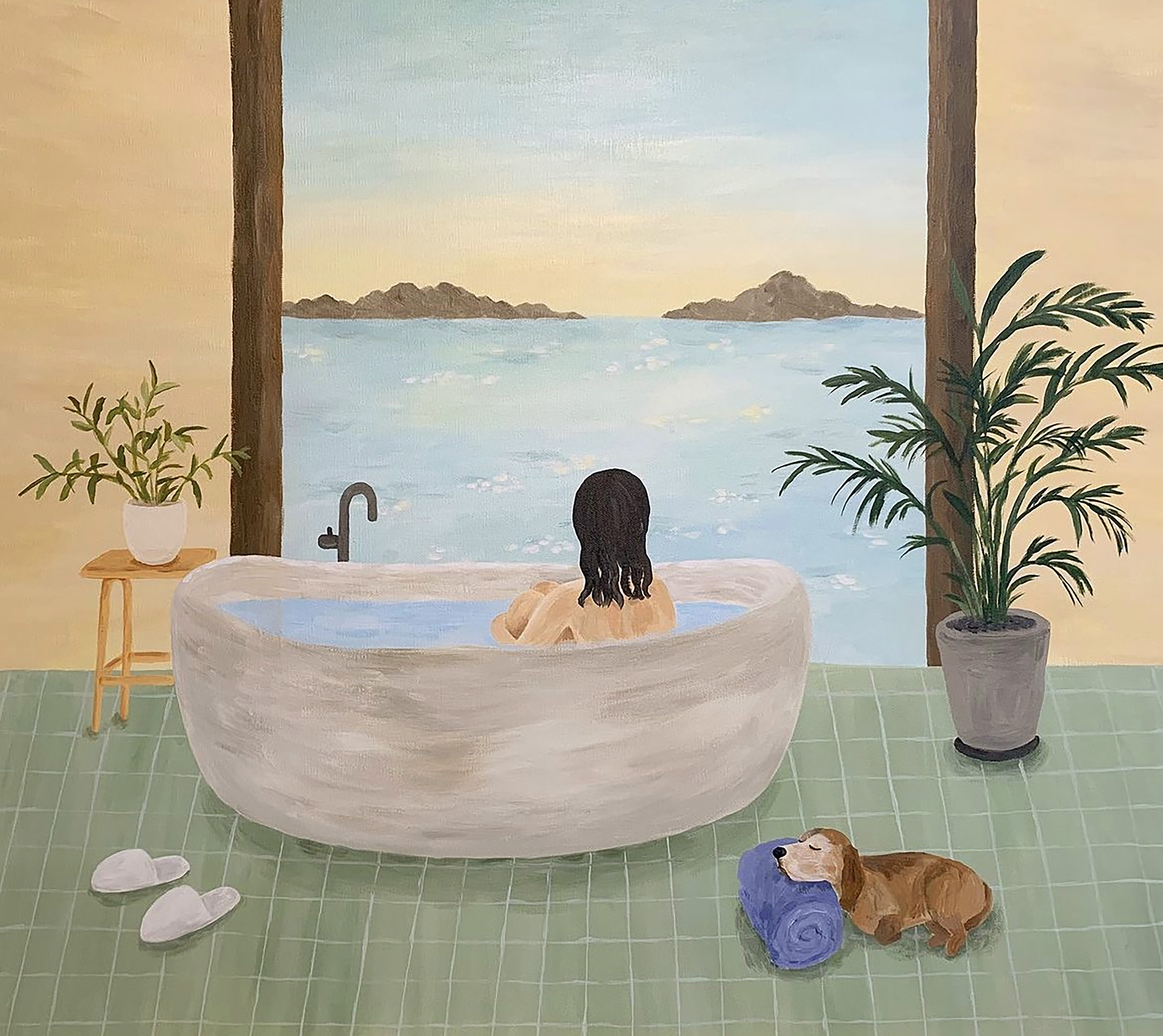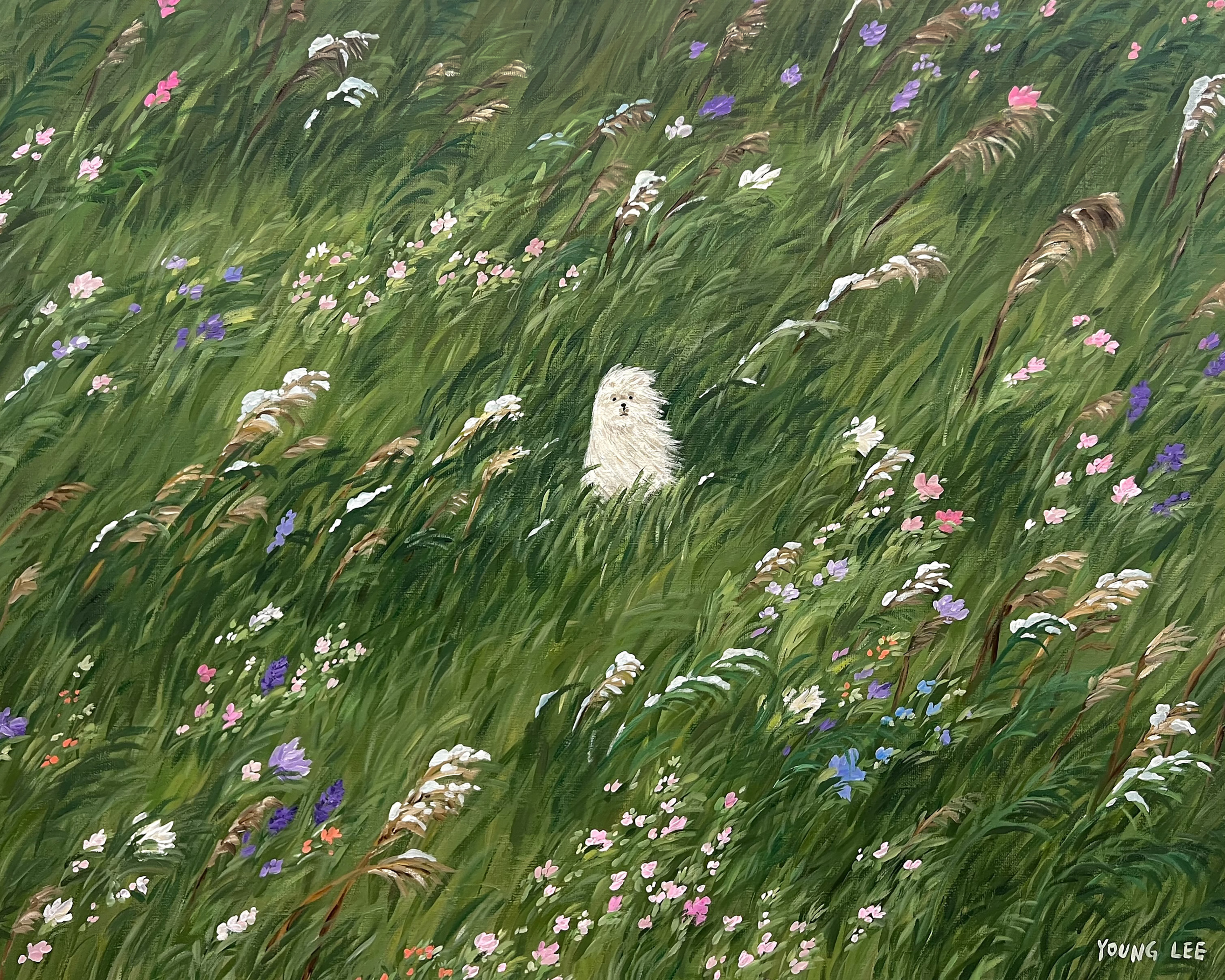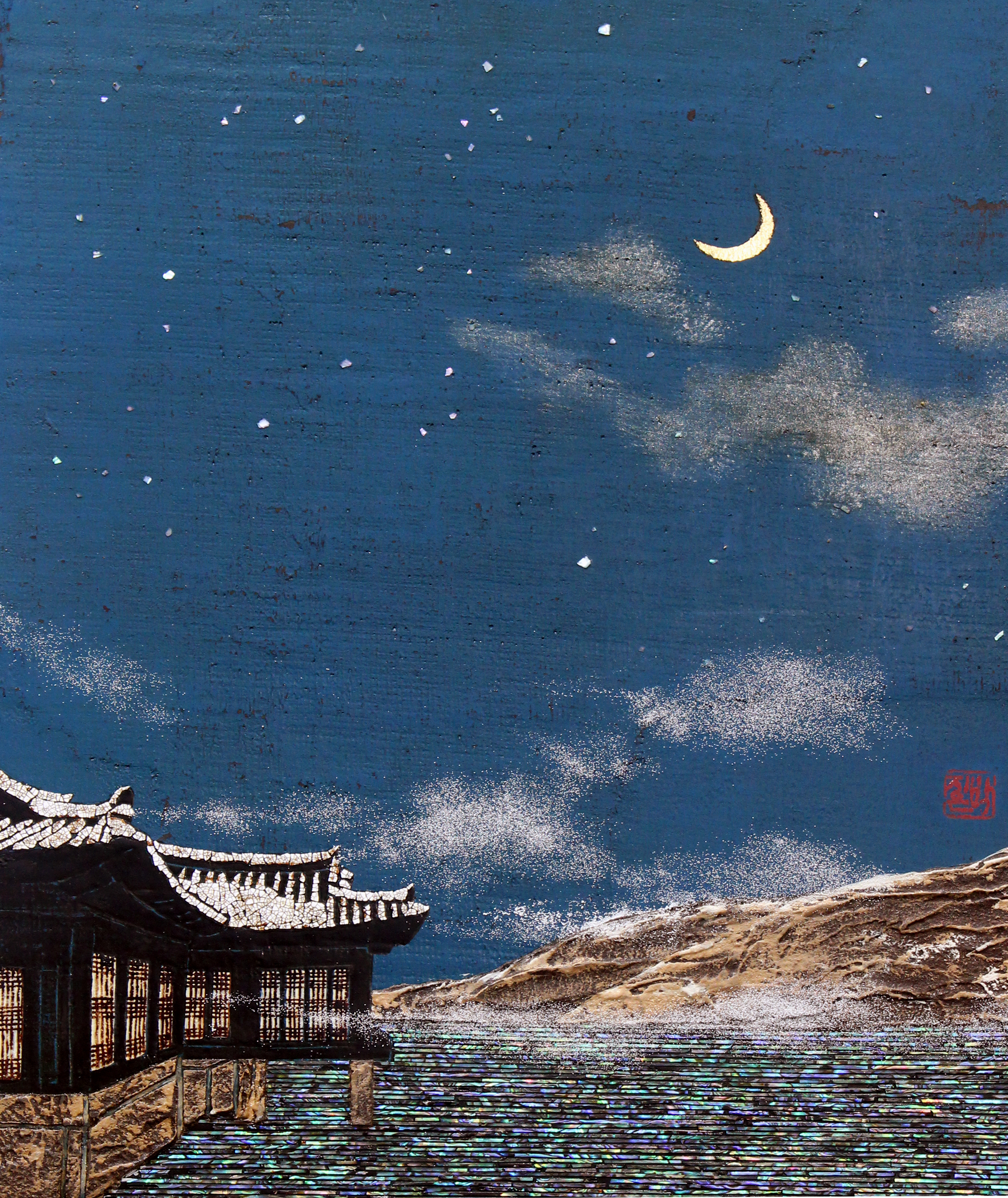 어린 날의 풍경. 나의 작업은 유년시절의 추억에서 시작되며, 작품에는 달과 식물, 집이 혼합된 자연풍경들이 등장한다. 이는 누구나 가지고 있는 마음 한 켠의 따뜻한 기억을 녹아 내어 동화 같은 장면으로 풀어 내었다. 일상속에서 우리는 대부분 누구나 할머니 댁의 따뜻한 추억을 가지고 있다. 그런 기억들이 모여 지금을 살아가게 하는 원동력이 되기도 한다. 작가 역시 할머니 손에 자랐던 유년시절을 떠올리며 눈이 쌓인 돌담의 시골집 풍경이나 지붕 넘어 보이는 큰 보름달이 모습은 어린 시절을 추억하게 만드는 평범한 풍경과 동시에 도시에서는 느낄 수 없는 정취와 서정적인 분위기를 담아냈다. 어둡고 적막한 공간에서 혼자 밝게 빛나고 있는 달의 존재는 우리에게 희망을 전달하는 거대한 생명력 그 자체이다.