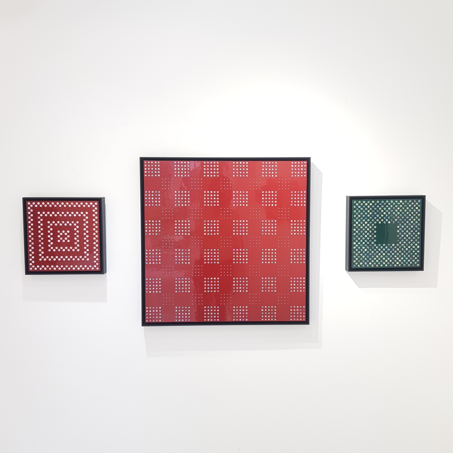 시간의 흐름을 색과 형태로써 표현하고자 하였다. 회화에서의 색은 통제가 가능하다. ‘기억의 상’에서는 색을 조색하고 회화적인 표현을 통해서 시간의 지속성을 표현하기보다는 자개라는 재료의 물질성과 시간성에 주목하고 이를 이용하였다. 자개는 조개가 자라고 가공되는 시간, 통제가 불가능한 색과 무늬를 지닌 시간성의 특징을 잘 드러내는 재료이다. 자개는 4- 5년산의 전 세계 5- 6종의 조개에서만 생산, 가공된다. 그렇게 생산된 자개는 그 각각의 색과 무늬는 모두 다르고 인위적으로 만들 수 없다. 시간도 마찬가지이다. 시간은 통제할 수 없으며 선형적으로 혹은 비선형적으로 지속되어 나간다. 우리 기억의 상, 그 지속과 진행의 연속성, 방향의 단일성을 물질성에 적용하고 자개를 연속적으로 배열하여 시간의 지속성을 부여하였다.