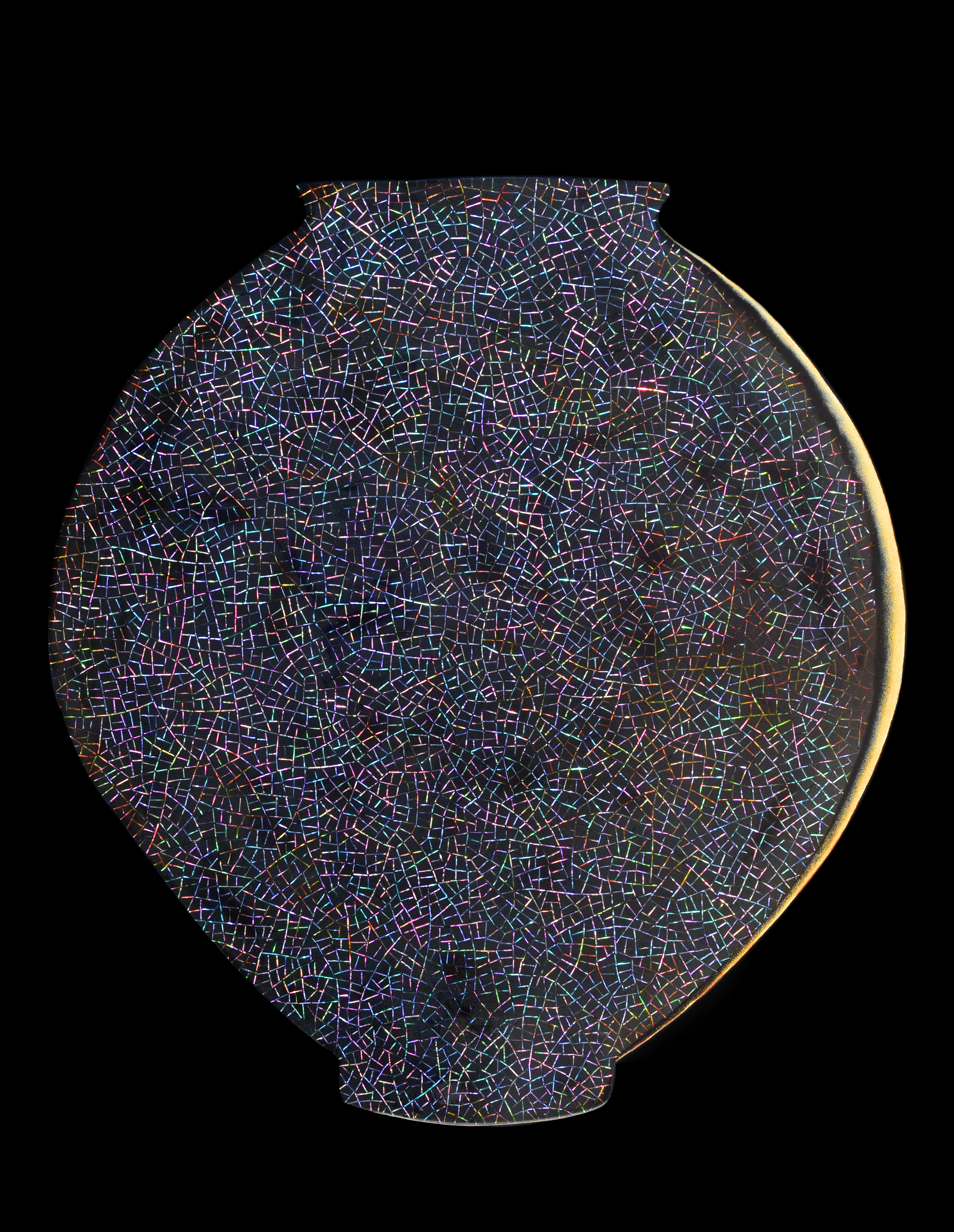 Repeated coats of lacquer spread and merge, rendering the surface endlessly soft and resonant. Her light is not the fierce radiance of the sun, but the gentle glow of moonlight seeping into darkness.