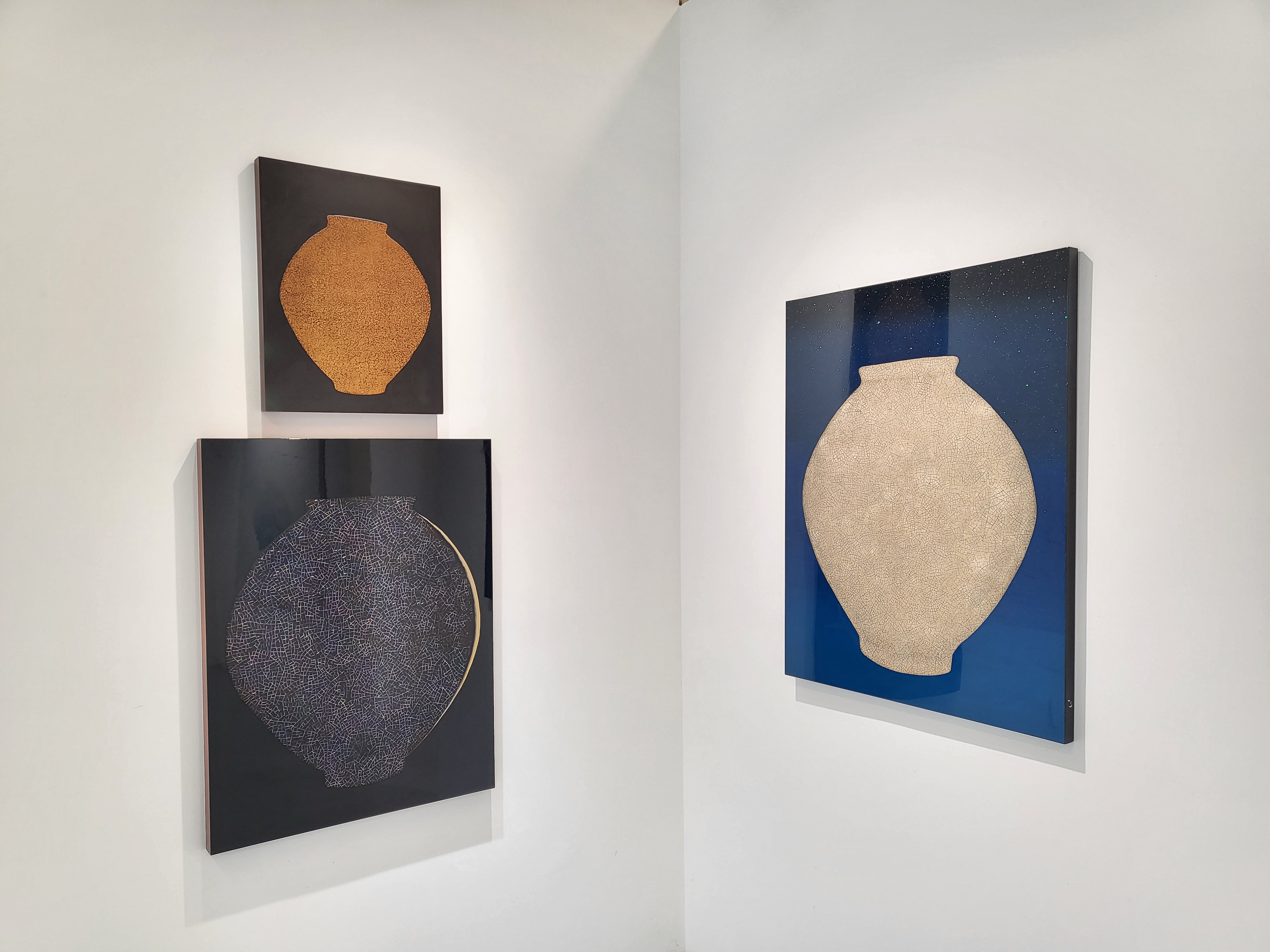 작가에게 달항아리는 달빛이다. 완벽하지 않은 균형, 미묘한 비대칭은 오히려 인간적인 온기를 품는다. 가까이 다가서면 미세한 흔적과 균열이 마치 피부처럼 살아 숨 쉬며, 시간과 기억의 감각을 불러낸다.