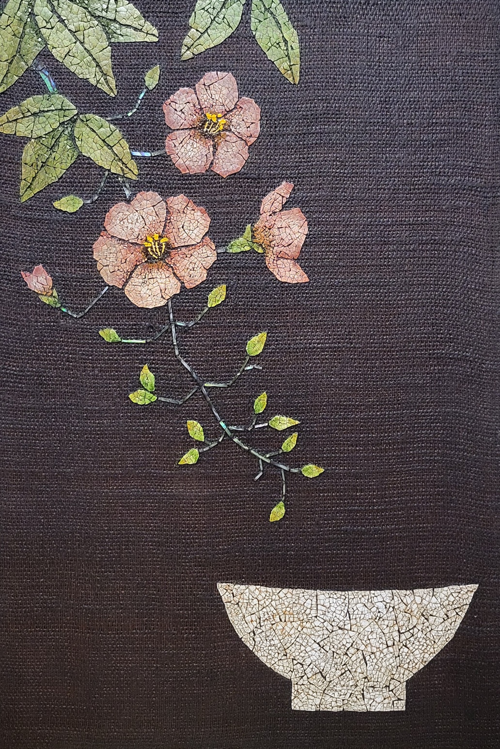 능소화와 다완 24x35cm 천연옻칠, 자개, 계란 난각 2024 정혜욱