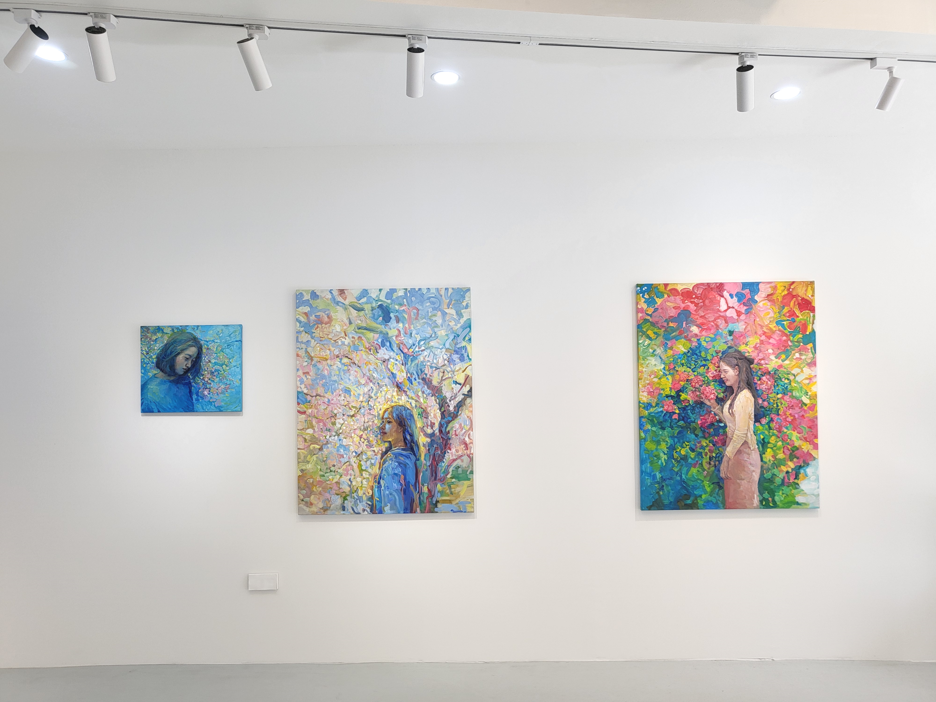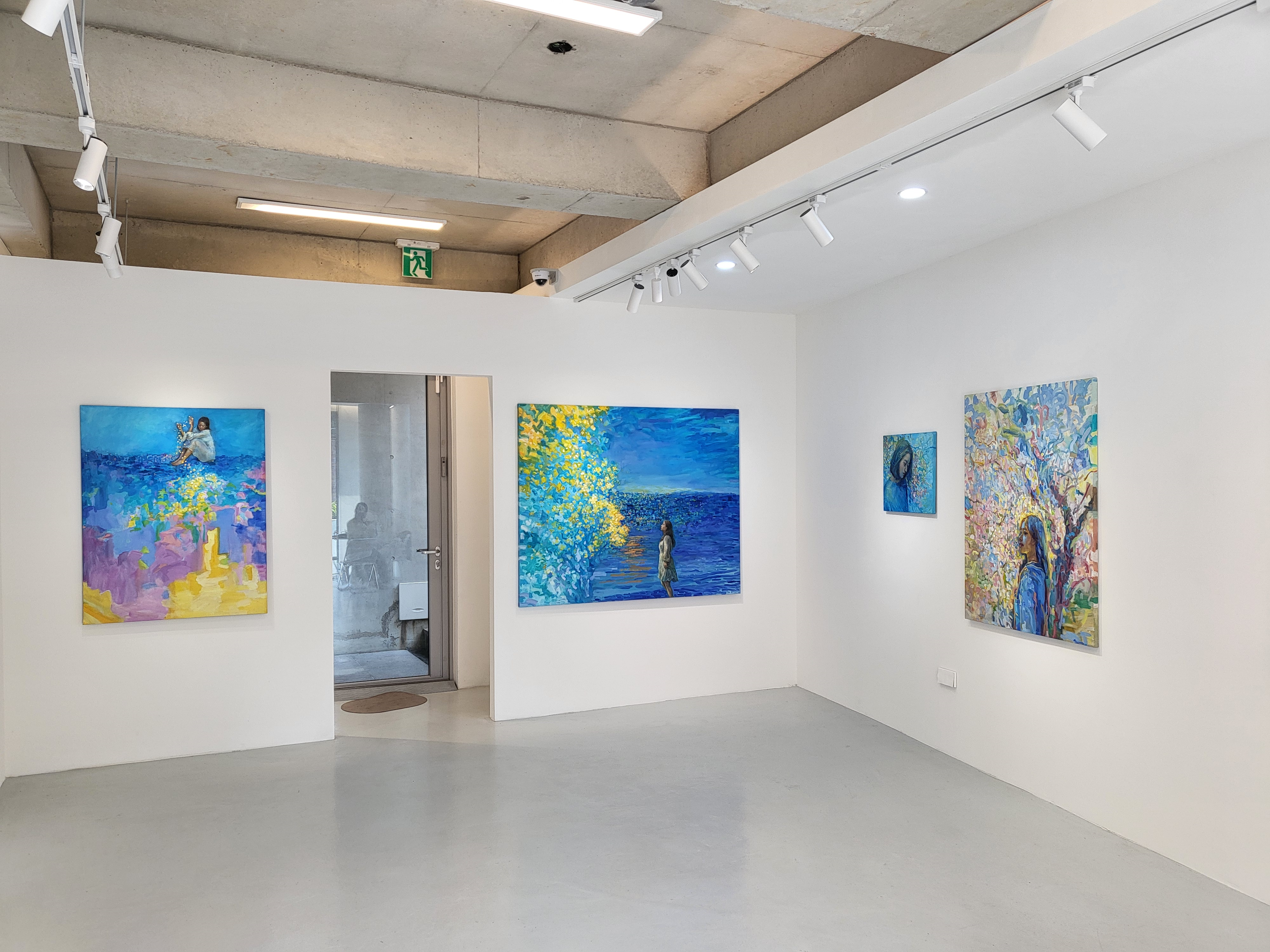윤여름 작가는 단순한 시간의 흐름을 넘어, 빛과 어둠 사이에서 감각이 깨어나는 순간을 탐구한다. 푸른 빛이 감도는 풍경, 몽환적인 분위기, 그리고 그 안에서 피어나는 감정과 기억들. 작가는 회화 작업을 통해 블루아워가 가진 시적인 정서를 표현한다. 푸른빛 속에서 우리는 익숙했던 것들을 새로운 시선으로 바라보게 된다. 낮의 분주함이 가라앉고, 밤의 깊이가 드리우기 전, 우리는 내면의 소리에 더욱 귀 기울이게 된다. 작가는 삶 속의 수많은 고통에도 불구하고 그러한 고통조차 의미있고 아름답다고 말하는 내면의 긍정적 소리를 보여주고자 한다. 고통을 겪은 이후에 세상의 아름다움에 대해 깨닫는 과정을 잔잔한 어둠의 블루톤 너머를 뚫고 다가오는 희미하지만 아련한 빛으로 은유한다. 이는 빛과 어둠 모두가 공존하는 아름다운 세상에 대한 긍정이다.
