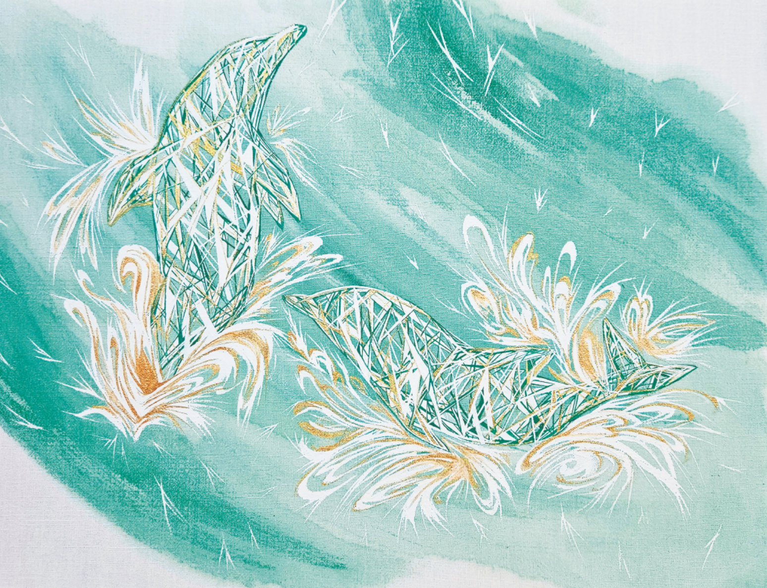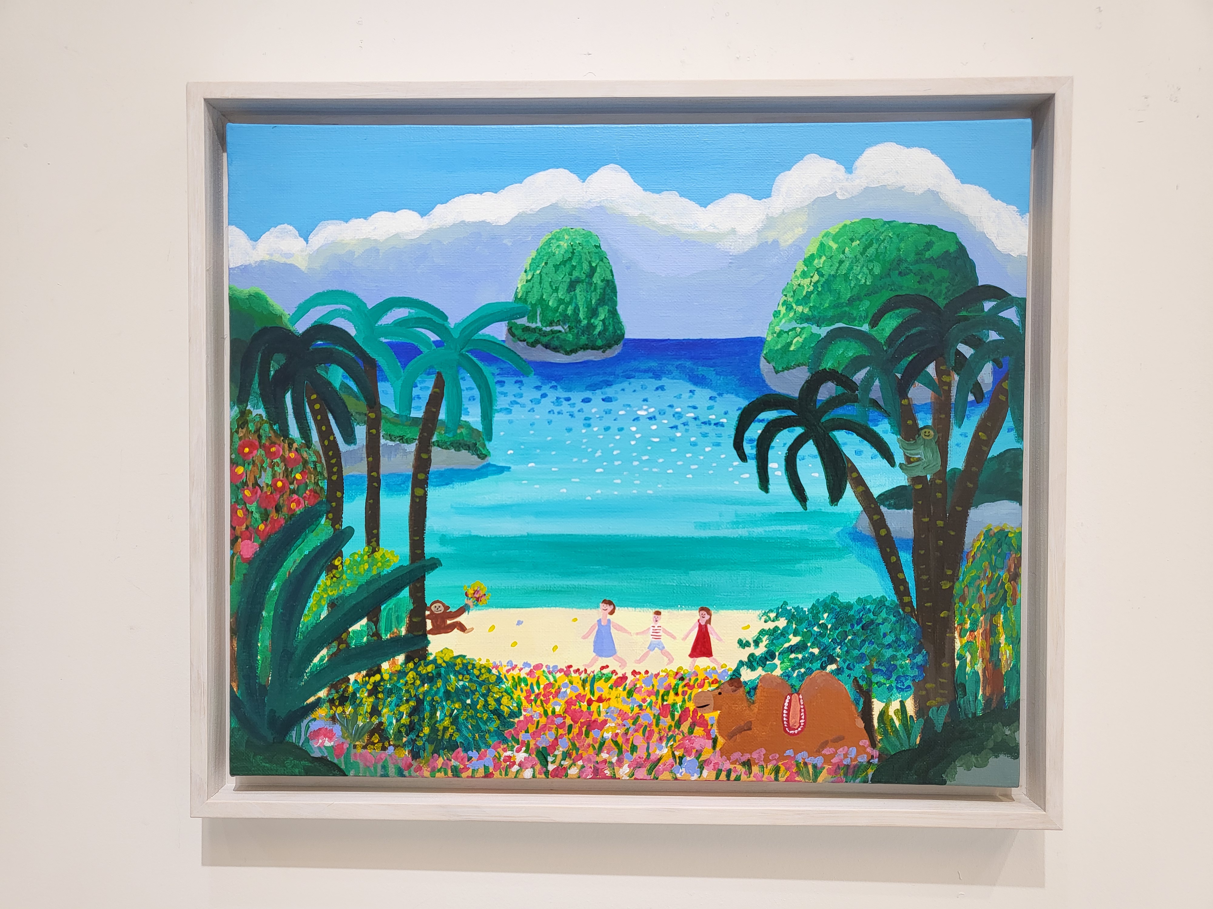 주요 색채로는 초록과 파랑 계열이 사용되며, 수평적인 구도를 통해 시각적인 편안함을 극대화한다. 고채도의 밝은 색상과 유려한 곡선으로 표현된 작품은 순수했던 유년 시절의 기억을 상기시키며, 관객에게 동심으로의 회귀라는 특별한 감각을 선사한다. 또한, 한국적인 요소를 재해석하여 담아내어, 독창적 개성과 전통의 조화를 보여준다. 작품을 통해 현대인의 지친 마음을 위로하고, 일상의 걱정을 잠시 내려놓게 하는 기회를 가졌으면 하는 바램이다. ' (어느나래 작가노트 중)