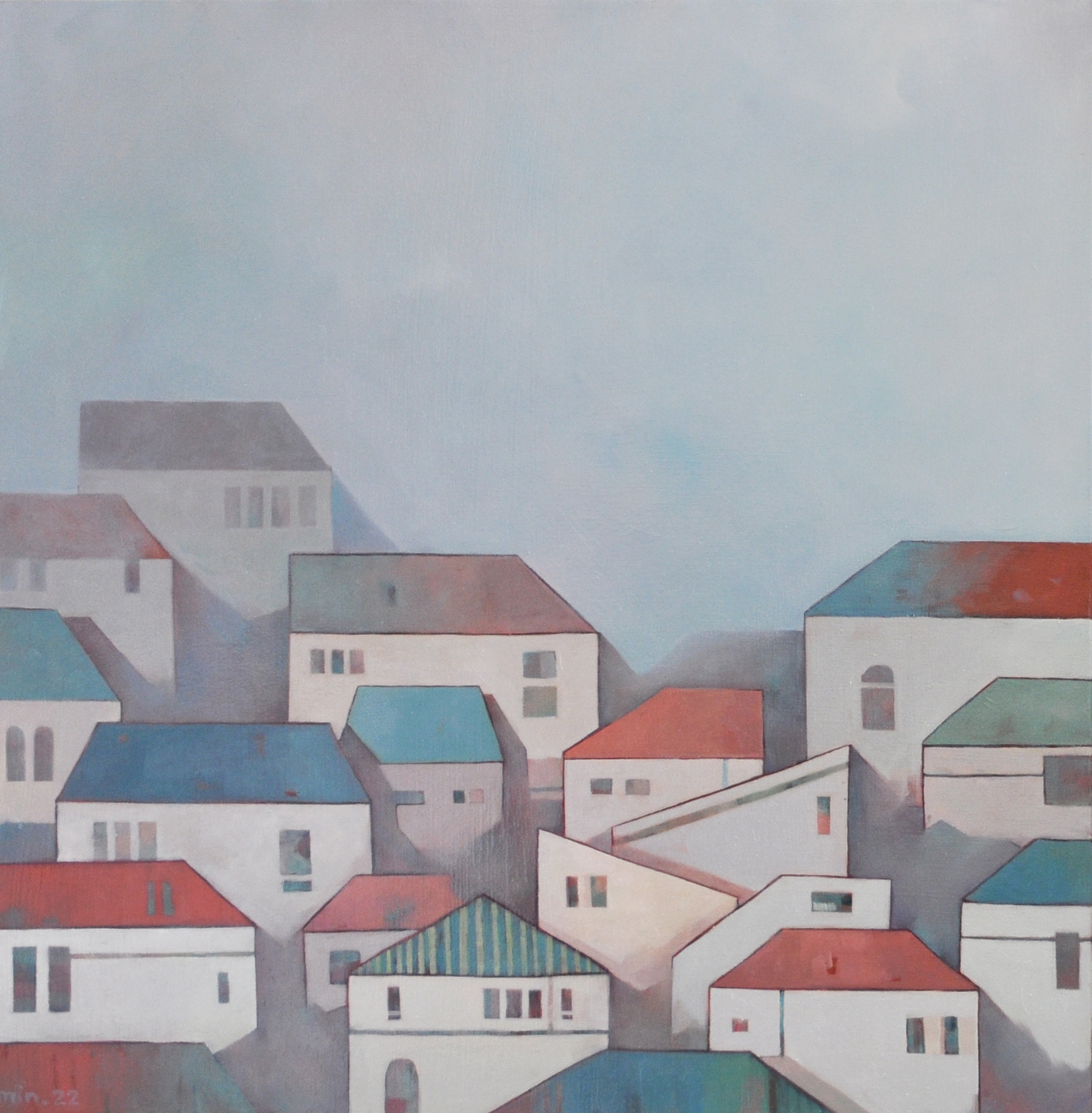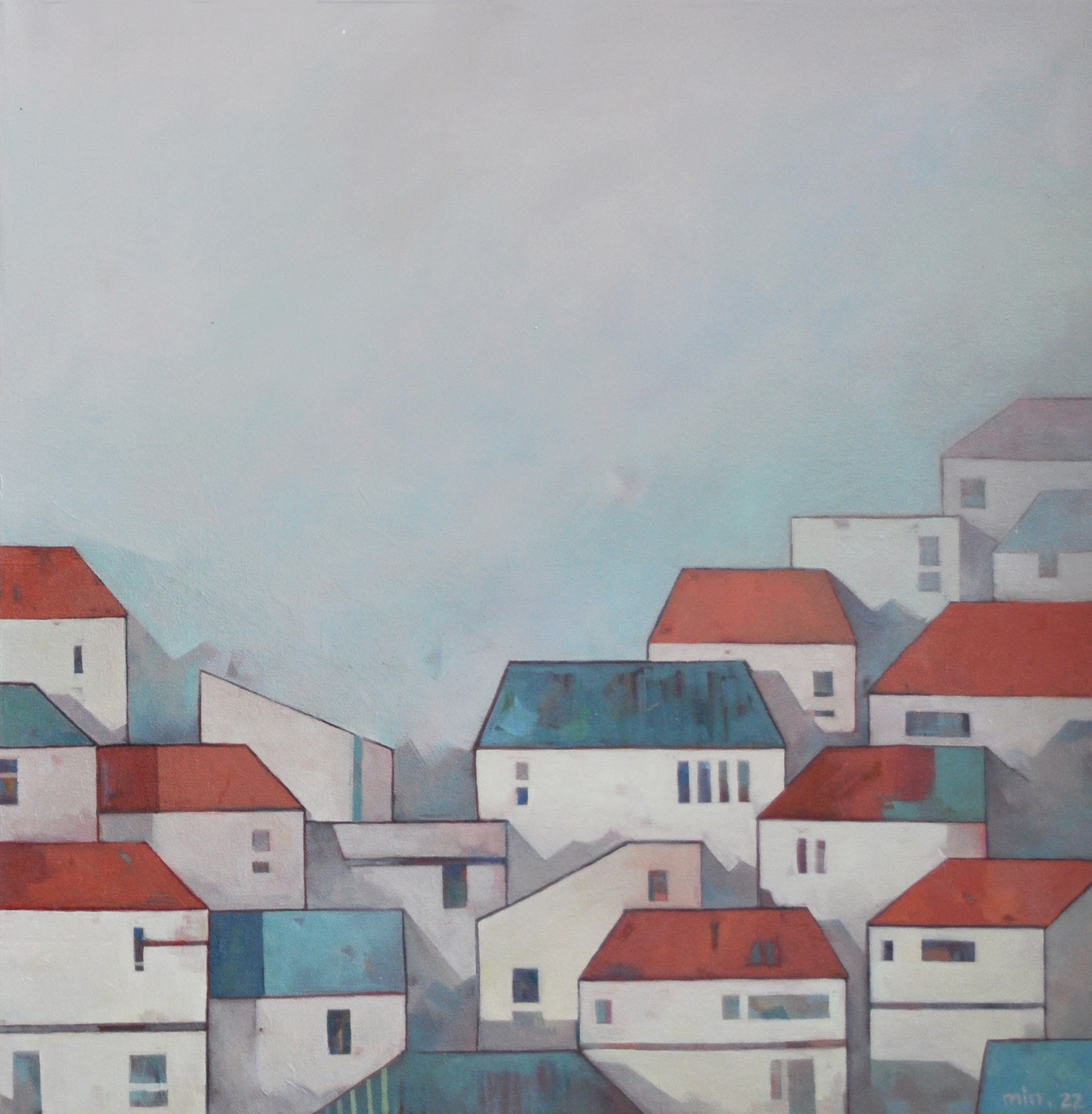 이를 바탕으로 나는 복잡한 구조의 집들의 모양을 가장 기본적인 도형 단위인 수직, 수평, 사선 등으로 읽어내고 이를 통해 이루어진 기본도형을 겹쳐서 하늘을 향해 쌓아 올린다. 급격히 산업화되고 현대화된 세상의 복잡한 건물의 구조를 어린시절 처음으로 인지하게 되는 기본 도형으로 이미지를 단순화 시켜 집을 해체하고 겹치고 쌓아나간다. 나아가 주변의 공간에 대한 인지와 관계를 정립한다. 집을 쌓아 만들어낸 이미지들은 나아가 우리가 주위에서 볼 수 있는 이웃이다.
