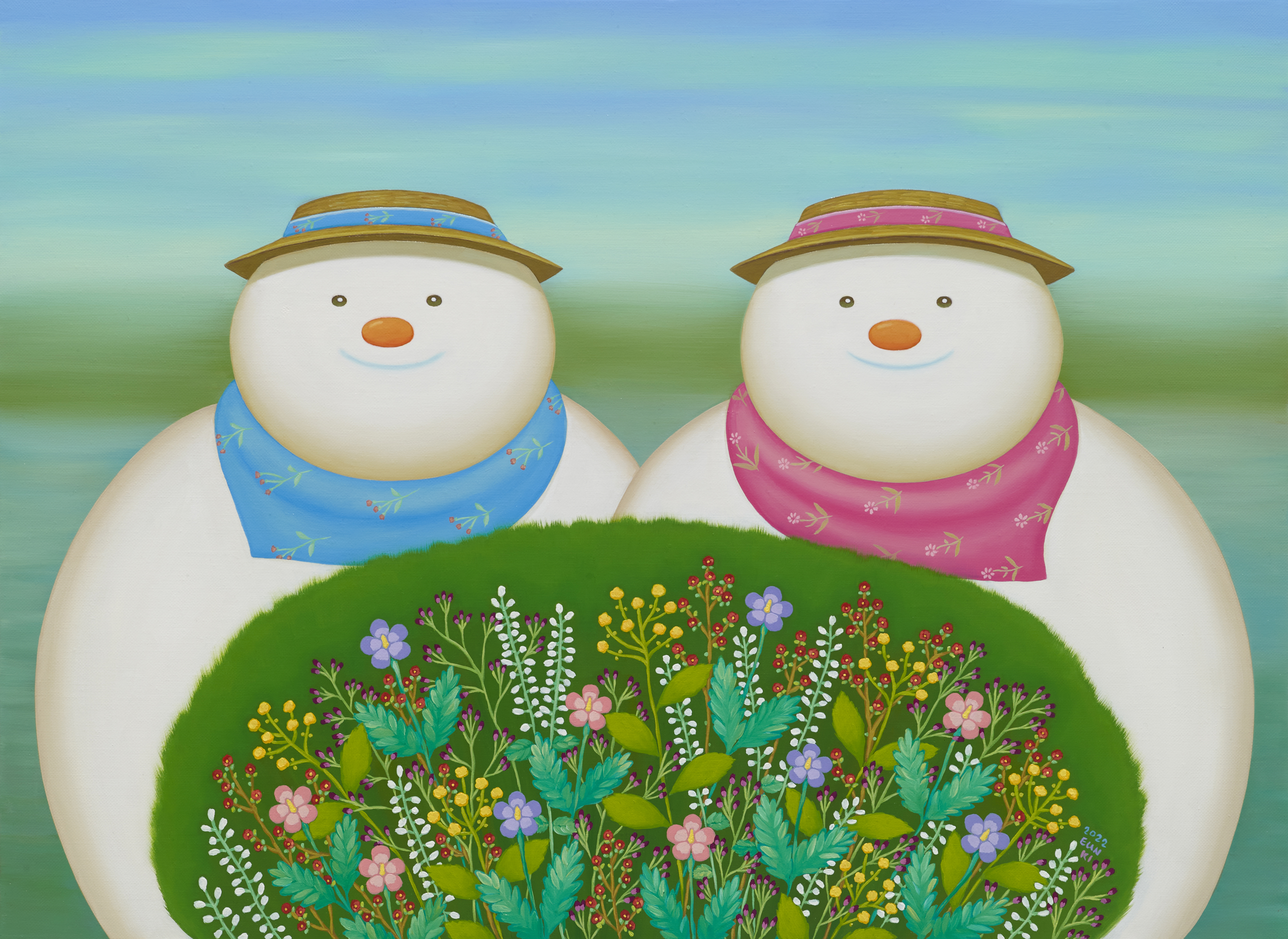 김은기의 꽃도 르동의 꽃처럼 복합적 성격을 가지고 있다. 그래서 단순한 정물의 성격으로 규정할 수가 없다. 그의 꽃은 행복 이미지를 극대화시키는 상징성과 함께 장식적 의미도 지니고 있다. 꽃은 정물화의 구성을 따르고 있지만, 자신의 생각을 담기 위한 독특한 조합을 지닌다. 그가 화면에 등장시키는 꽃은 색채가 아름답고 모양이 예쁜 꽃들만 모아 놓은 꽃다발이다. 그 속에는 행복한 이미지를 보여주는 여러 가지 상황이 데코레이션처럼 담겨 있다. 어린 시절 꿈을 심어주었던 장난감, 동화책, 사탕 다발이나 생일케이크, 프로포즈하는 연인, 결혼식의 신부, 행복을 기원하는 축하 카드 같은 것들이다. 이런 그림을 보고 있으면 저절로 기분이 좋아진다. 마치 기대했던 선물을 받은 느낌이다.
